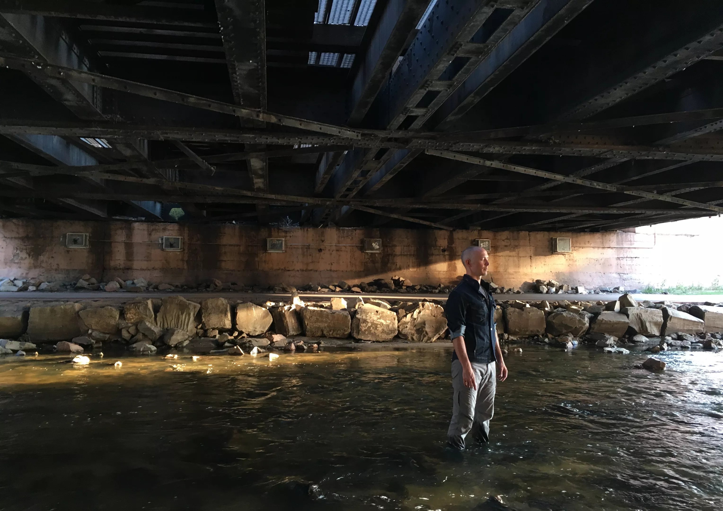 Through narration, music, movement and a few other surprises, Neverhome forces its audience to throw off the safety of permanence for something more fragile. “There’s some speculation about the wayfarer’s act of reclaiming a space as home for a minute,” notes Mueller. “A lot comes out though rigorous acts resulting in exhaustion. Without giving too much away, we have some heavy burdens that we carry through a lot of the route. In Denver, we spend part of the time working our way upstream in Cherry Creek, and in certain moments we actually drop anchor, like a layer of exhaustion, feeling like we can’t go any further for a moment.
