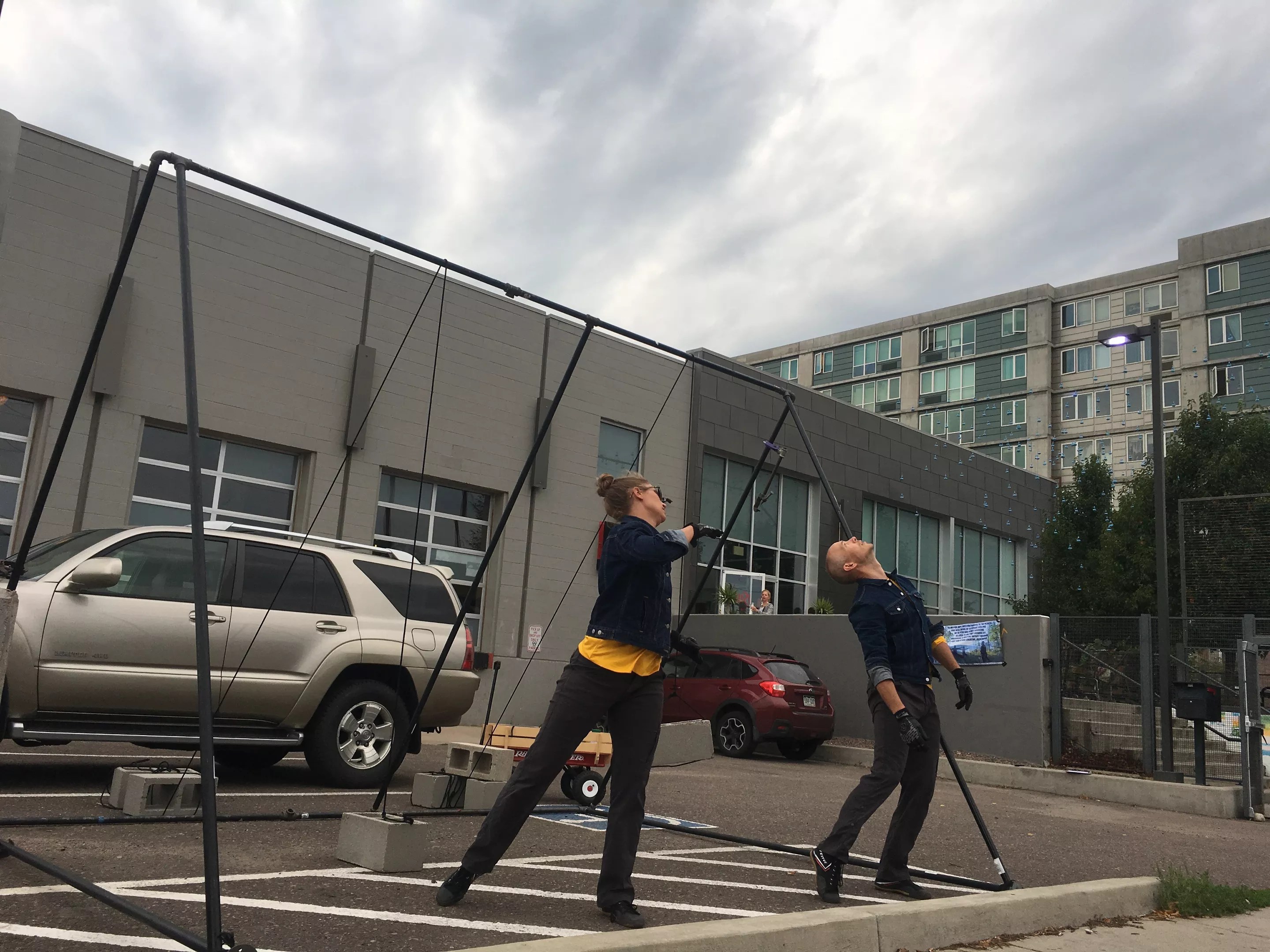 “His work is about gentrification and the building boom, and how impermanent these stone edifices are,” Mueller explains. “Our work is in the same vein. Part of our research was looking at the human form and body in action in architecture. It was about looking at how quickly the city is changing around people, and how the shifting Denver landscape makes people feel like refugees in a place where they’ve grown up.”
