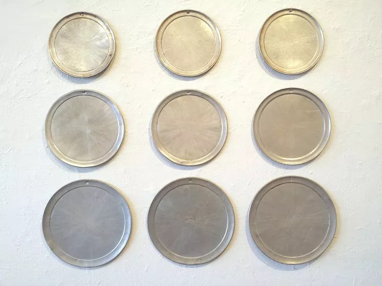 But Denver’s almost-oldest artistic cooperative has always been full of pirates, renegades who banded together almost forty years ago when there were few options around town for up-and-coming artists who wanted to show their work. In 1982, they docked in a modest, working-class section of Highland, at what was then called Pirate: A Contemporary Art Oasis, and they’ve been presenting shows there ever since, currently as Pirate: Contemporary Art. On Sunday, Bender was packing up pieces of the Phil Bender exhibit – nine pizza pans from Patsy’s Inn, the almost-century-old Italian joint next door that closed up last summer; repeating rows of numbers that he found at the Sports Castle when Sports Authority bolted last year; nine fans that he snagged when the Hinterland studio left RiNo last fall – as he contemplated packing up the entire gallery for a move to Lakewood in May.