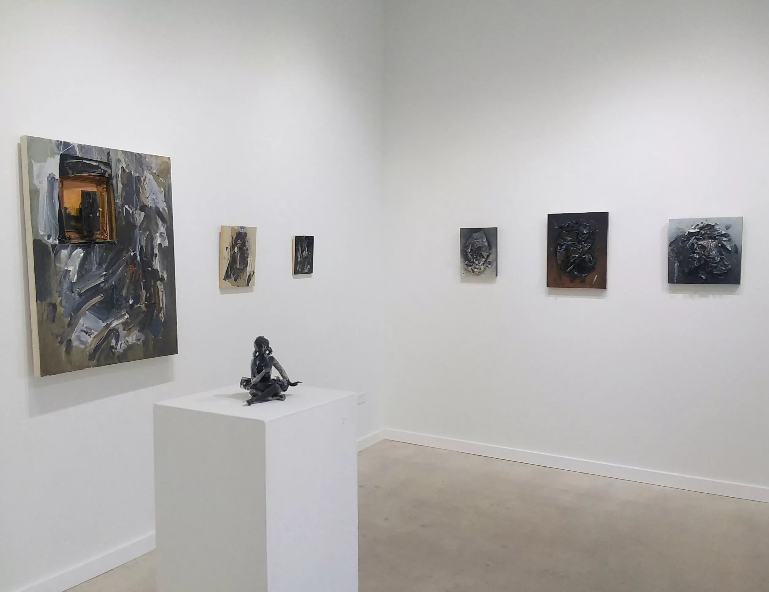 The solo shows that are now up do justice to Pirate’s new home. The exhibit in the Associates Space, Perception(s): Recent Work by Eric Anderson, looks like a group show, as there are three wholly separate bodies of work: conceptual wall sculptures made from found life jackets covered in concrete powder; figural abstracts; and incredible conceptual abstractions. Emerging artist Eric Anderson has appropriated blobs of paint from the bottom of industrial paint drums, attached them to wooden panels, and then painted over them – and the results are sensational. The way this screws with the whole idea of abstraction being a way to tap into an artist’s subconscious is delicious, since that’s not what’s going on at all. I’d love to see some bigger pieces; I think they’d scale up beautifully.
