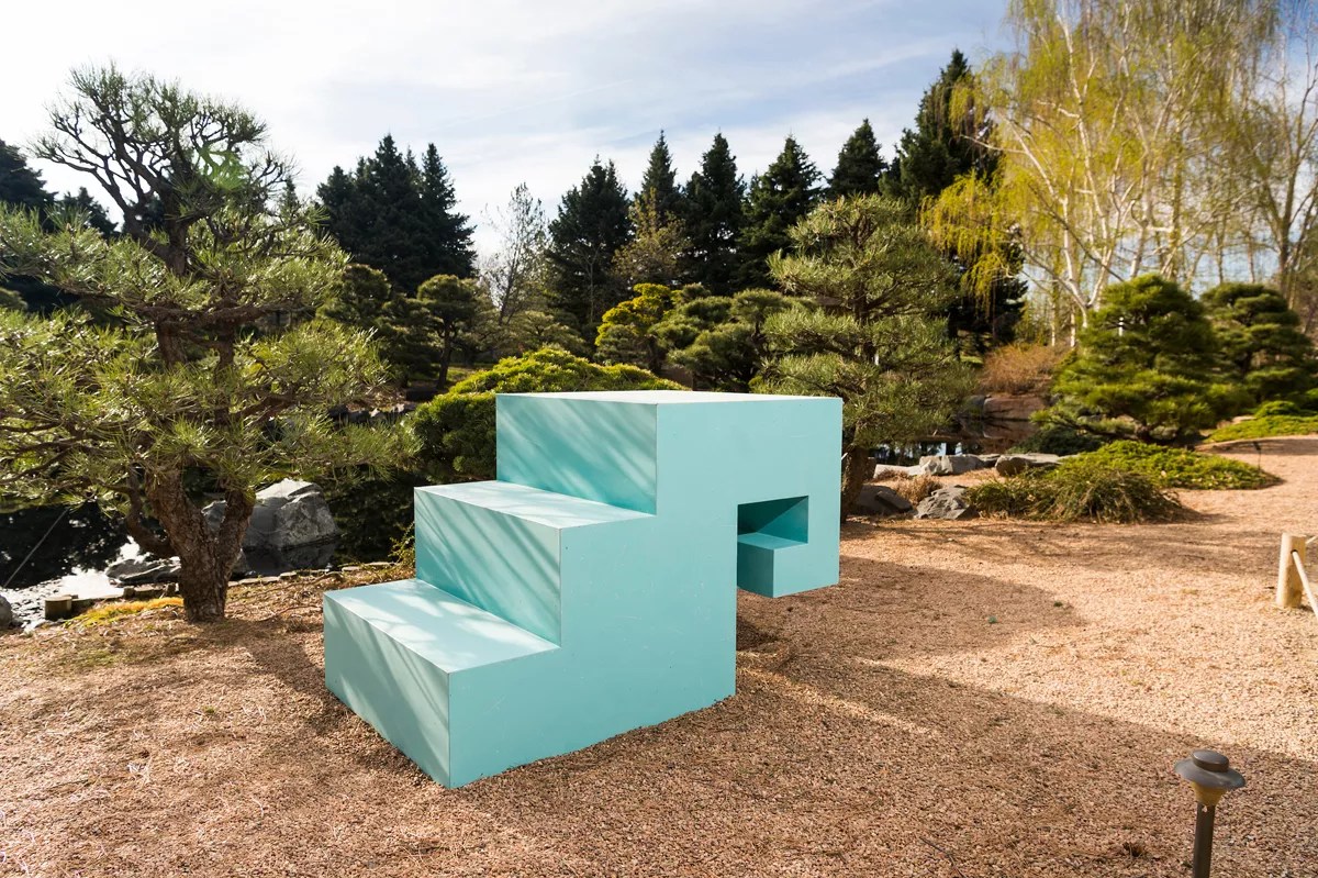 Outdoor sculpture shows are mounted every year at the Denver Botanic Gardens, and it’s hard to imagine a better setting for artworks, especially in spring, when everything is budding out. The latest offering, Pixelated: Sculpture by Mike Whiting, comprises over a dozen of the artist’s signature boxy sculptures, and the hard edges of his forms contrast beautifully with the soft edges of the plantings in the gardens.