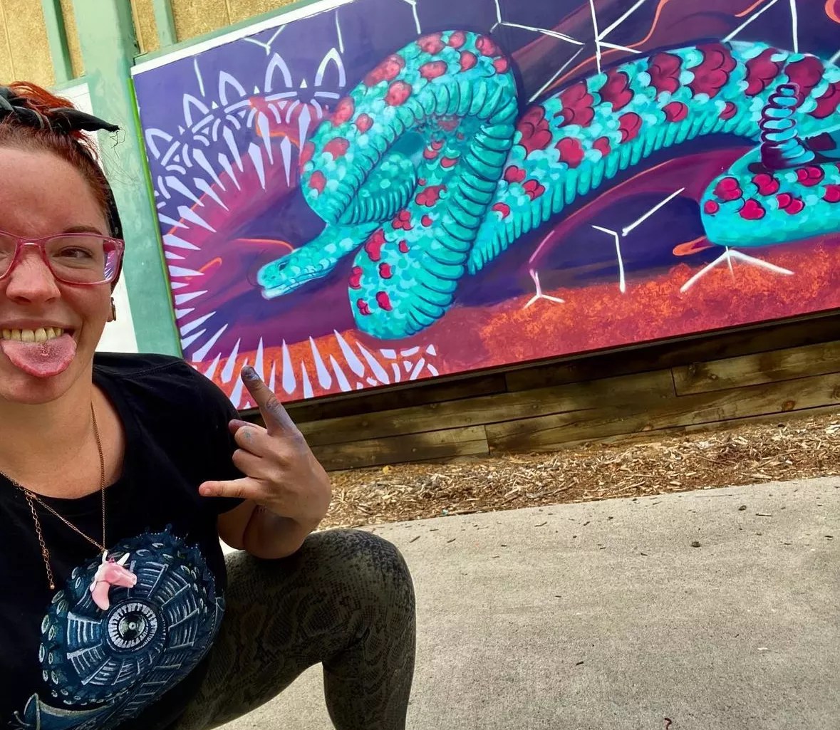 Denver presented a world of opportunity for Jessica, and she loved it here. She created several murals, including one of a rattlesnake that can be seen at Fiddler’s Green Amphitheatre, and was a constant presence in the live-painting scene, through which she made countless cherished friends while still maintaining longtime friendships across the country.