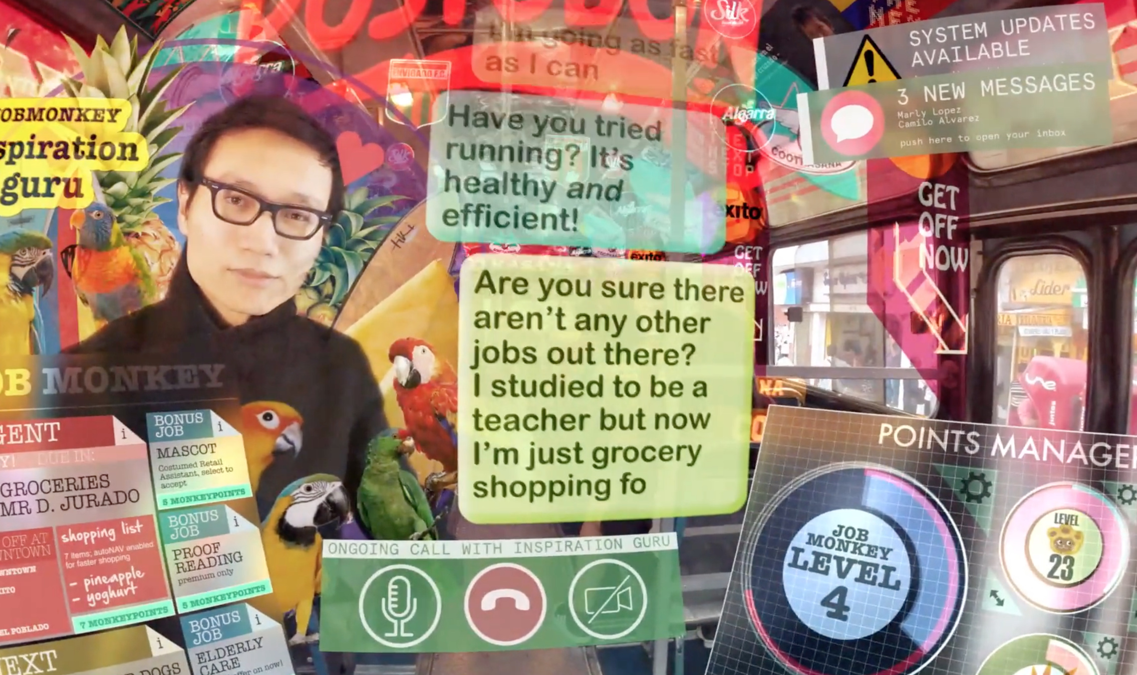That cinematic onslaught is the perfect prelude to Keiichi Matsuda’s “Hyper-Reality,” which depicts a post-device world that has turned into something akin to an iPhone screen, riddled with pop-up windows and incessant noise.