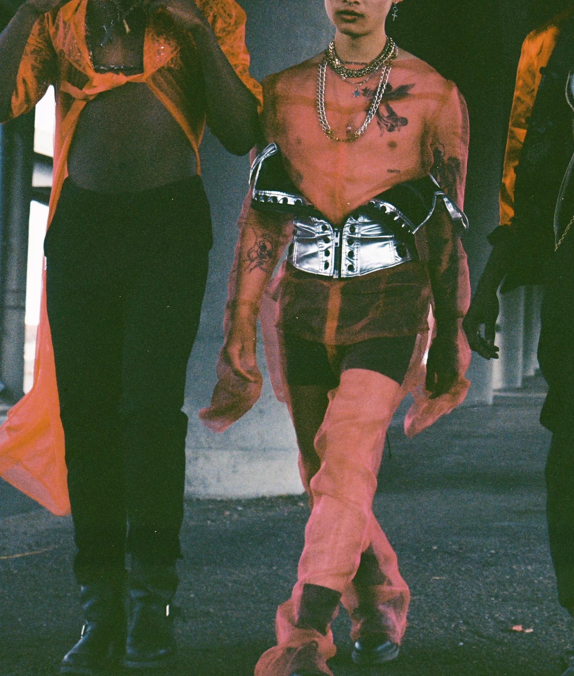 MacNicholas is evolving, too. “I have a lot of influences,” she says. “I take from a lot of high-end designers who are clean-cut and sleek and have beautiful lines. I love grimy shit, too. It think it’s important to have that crossover. Something high-end with something thrifted, like in the styling. My number-one inspiration for clothing in general is Eckhaus Latta. I like not only the clothing they make, which is beautiful, but their runways and photo shoots are always as inclusive as possible with race, gender, and just feature all sorts of different people. That is something we strive to do with Soft and Shallow.
