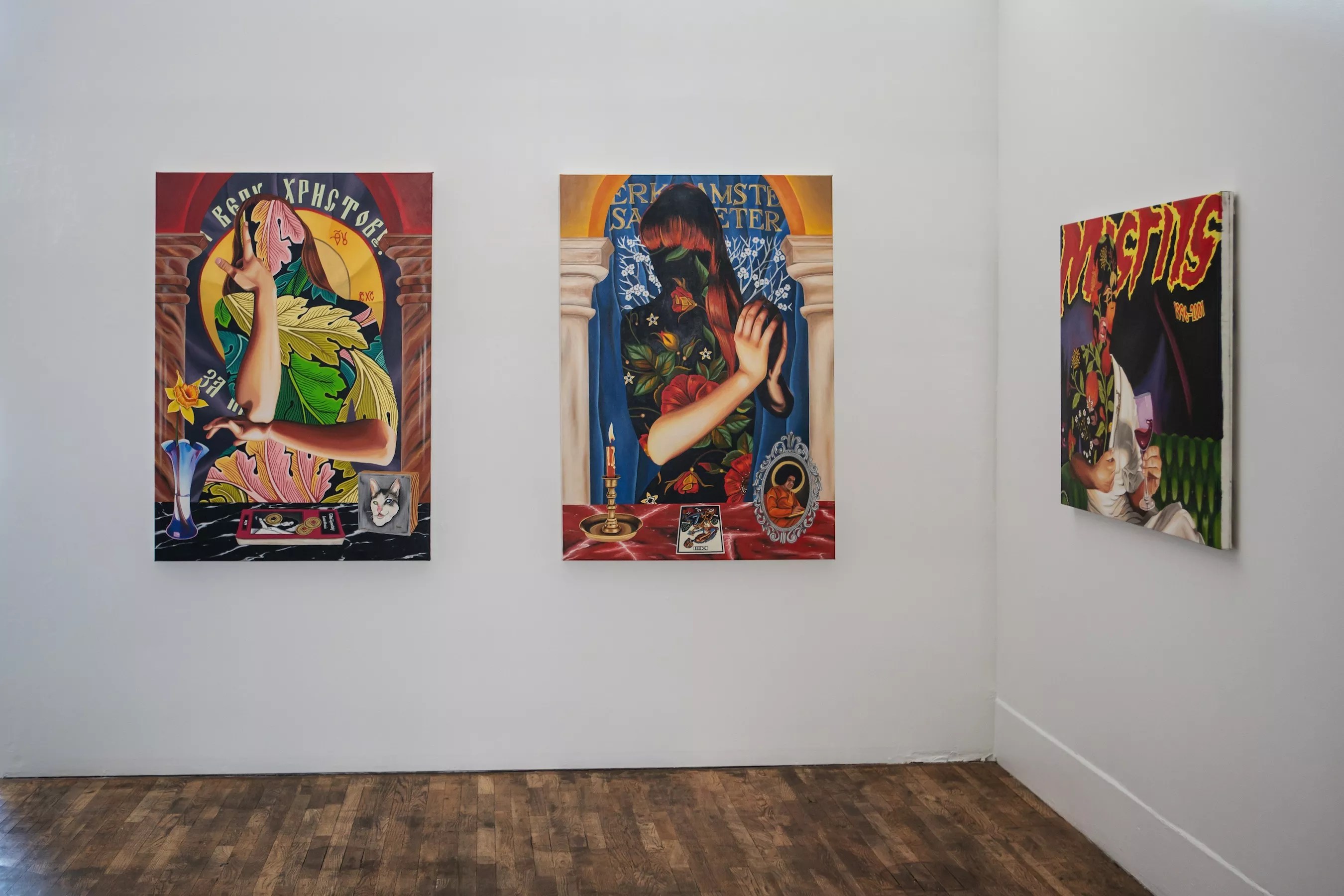 Installation view of Joe Clower: Paintings, with “Chaos Hell of Ecstasy” on the right.