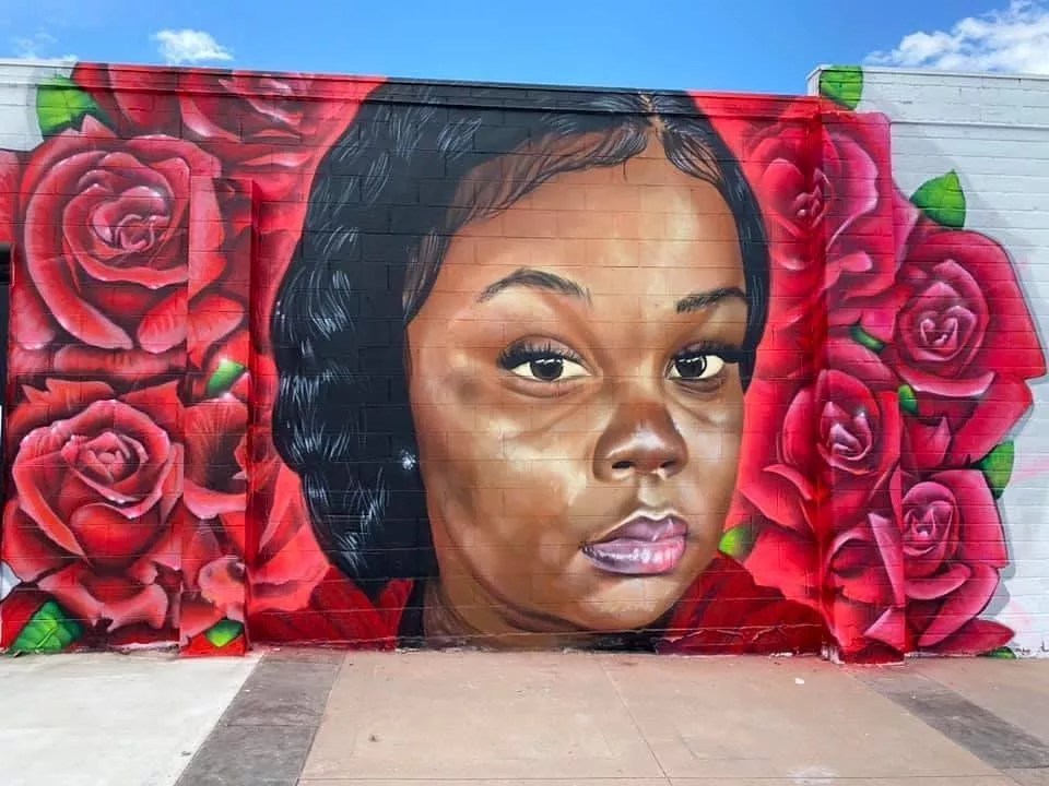 Muralist Detour framed Breonna Taylor with roses in RiNo.