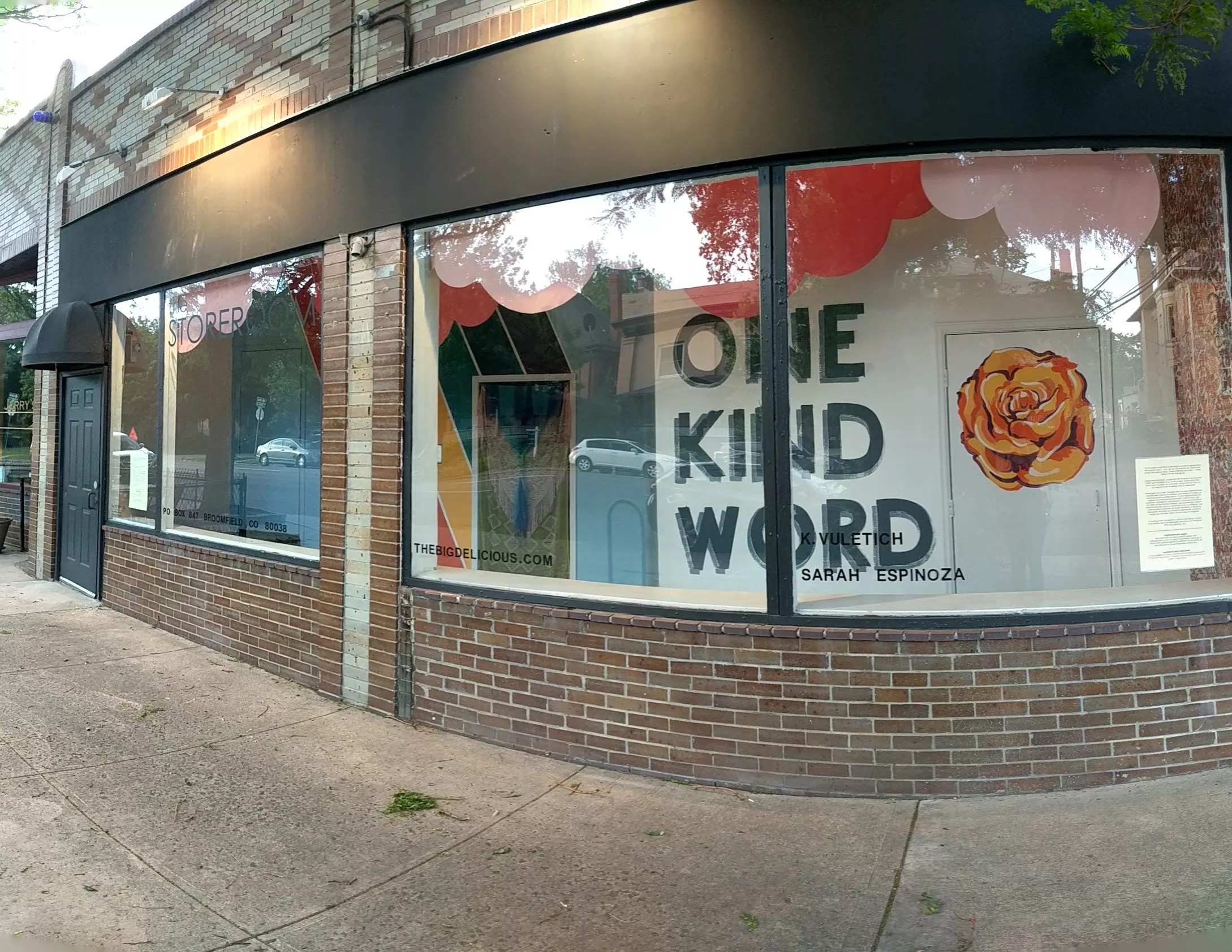 See One Kind Word, a storefront installation by K. Vuletich and Sarah Espinoza.