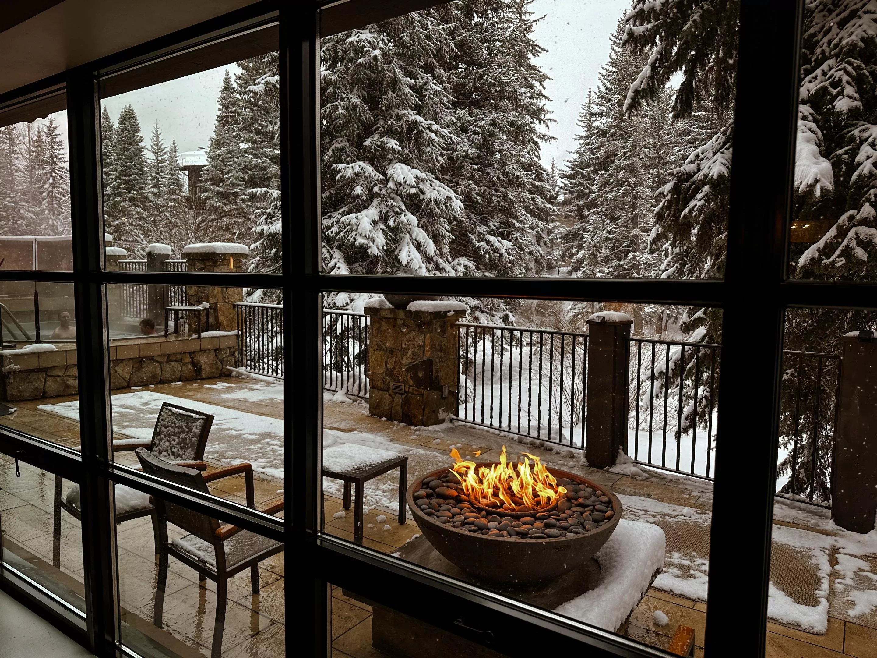 The Gravity Haus staff was incredibly accommodating: They greeted me warmly, the check-in process was easy, bags were taken to my room, and they made sure I knew about the fresh cookies that had just come out. My third-floor room was incredibly cozy, complete with a gas fireplace and a patio offering a picturesque view of snow-heavy trees.