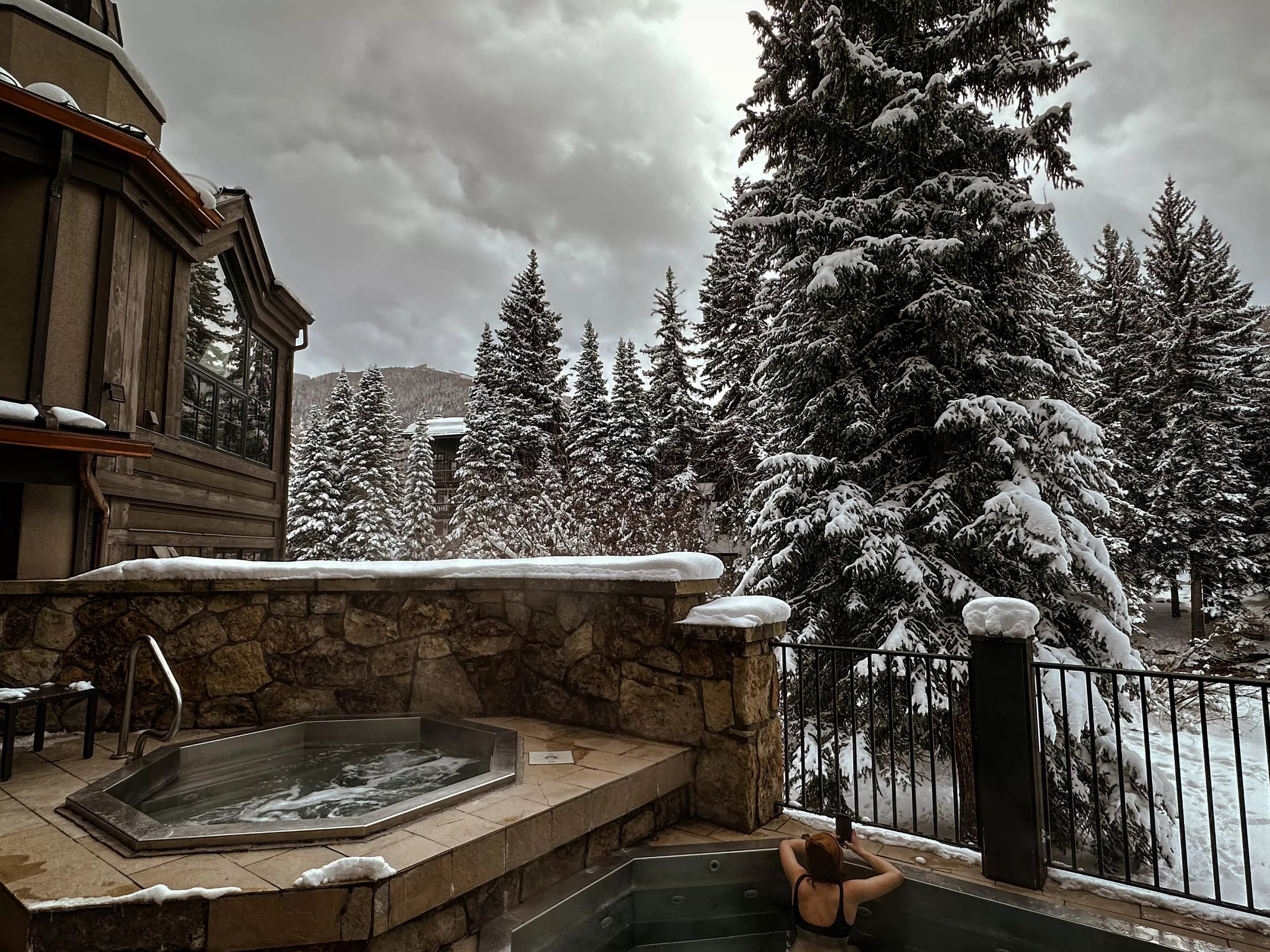 A focal point at Gravity Haus Vail has to be the two outdoor hot tubs. Large pine trees surround the property and hot tubs, but you can glimpse the slopes and skiers through the trees. Snow fell lightly as guests enjoyed the quiet, tranquil sense of calm in the winter air. I even overheard some taking what sounded like a work call from the hot tub. That’s my kind of remote work.