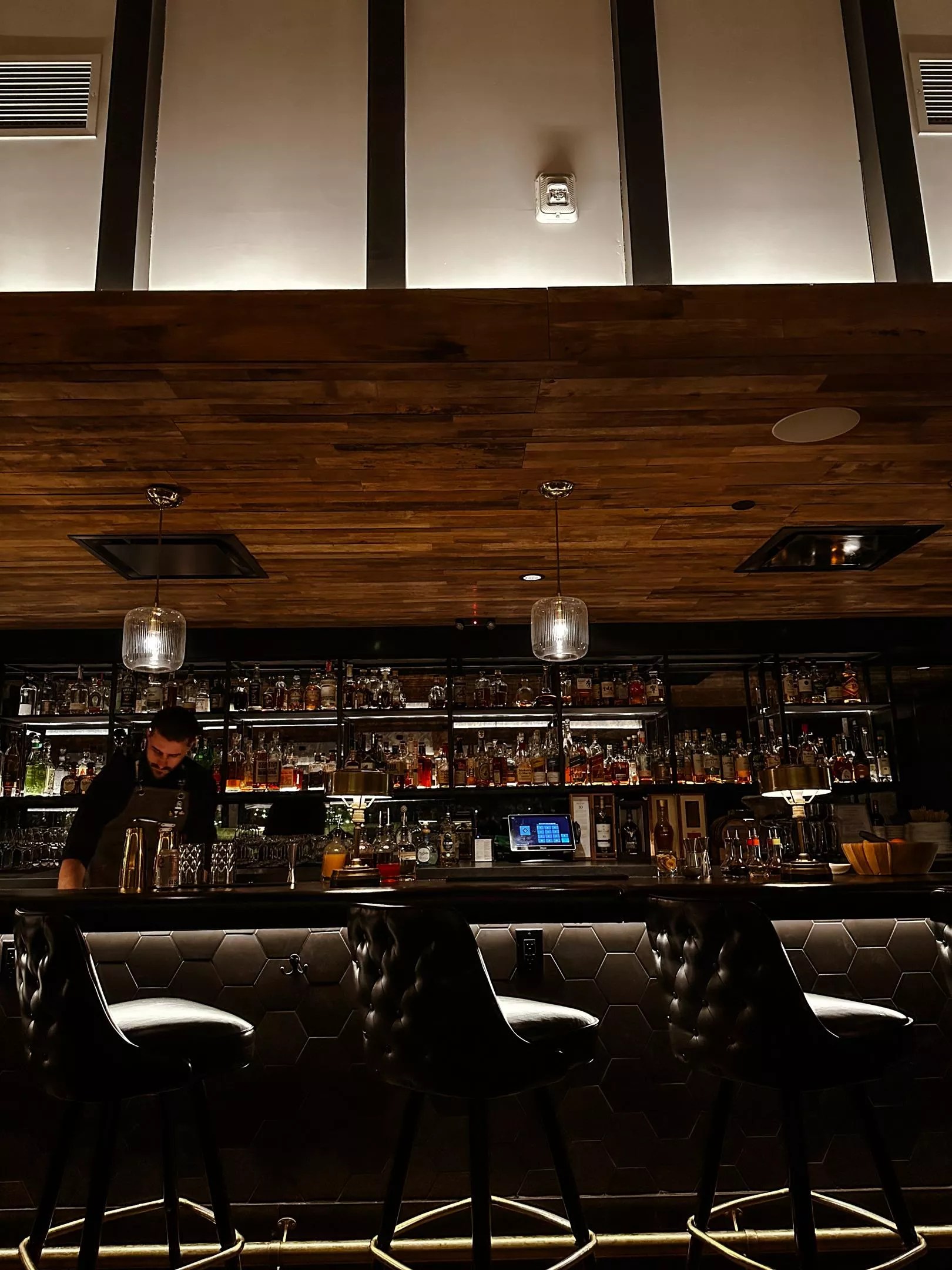 I had a 7 p.m. reservation at the Slope Room bar for dinner, quickly making friends with the bartenders and even a guest sitting two chairs down who was a Gravity Haus member, cashing in on their perks of a 50 percent-off stay and Slope Room gift card that was a birthday perk. Dark interior and twinkly lights strung on trees outside the windows provided a cozy and warm atmosphere.