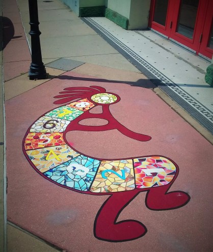 Chilean artist Adolfo Romero installs hopscotch art on Santa Fe Drive.