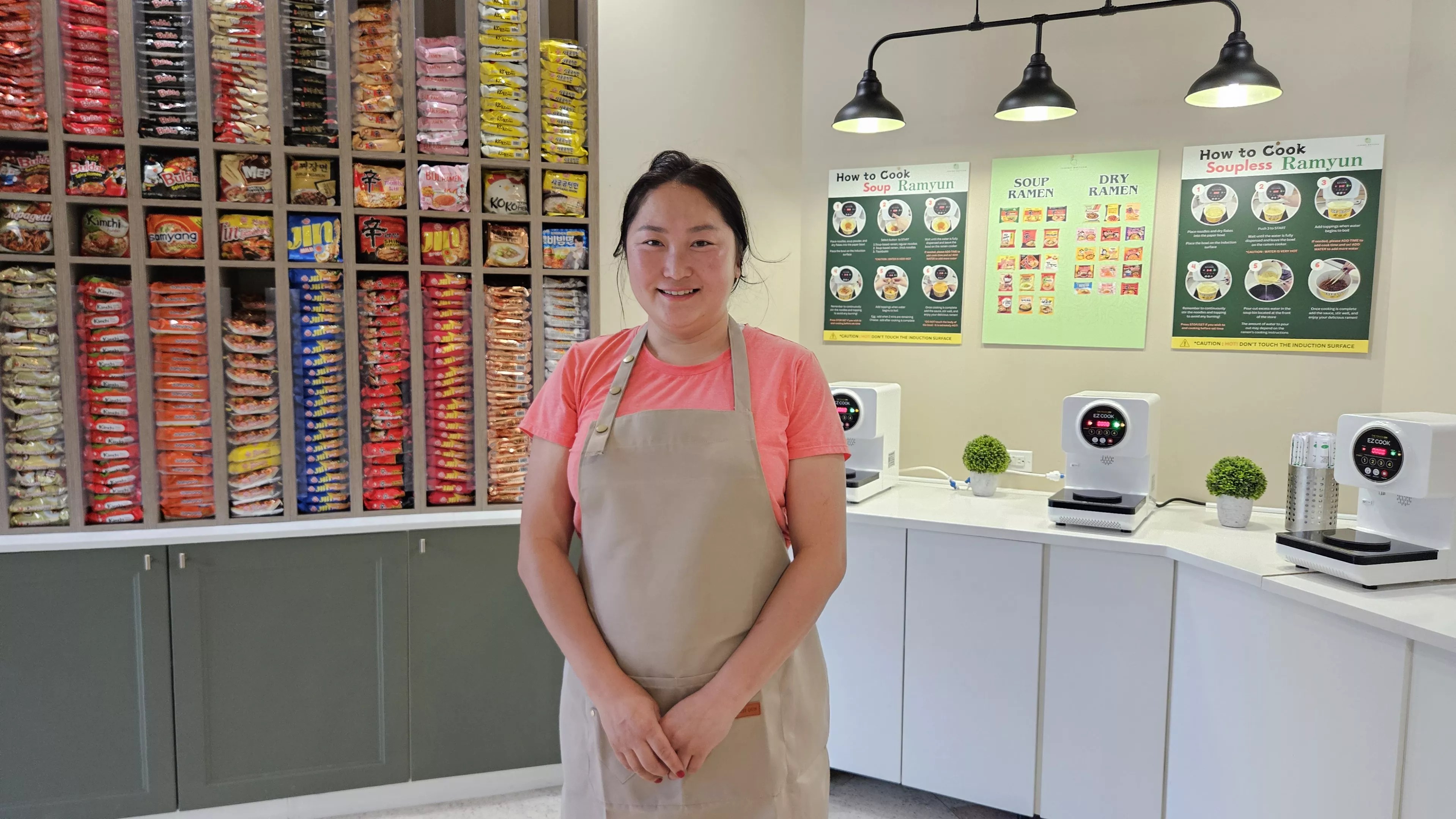 “We can sell fruit. I have an Ichigo Sando,” she notes, so she will be selling her popular strawberry sandwich and other fruit sandwiches from the kiosks. But for now, the ramen-making units should keep her plenty busy serving her collegiate customers.