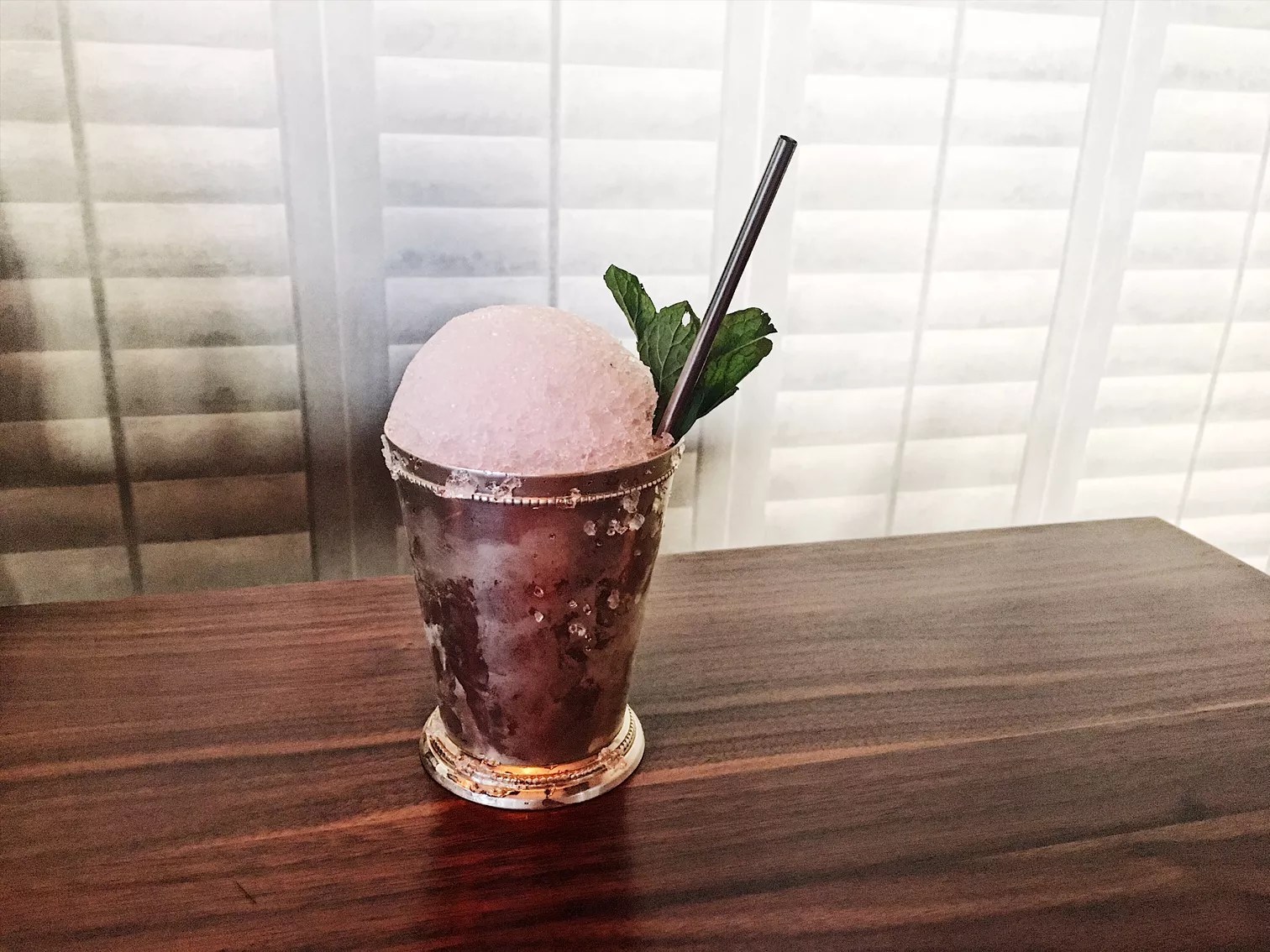 This brand-new import from North Carolina brings an opportunity to share a julep among a few of your closest friends: The Derby Day mint julep is served in a tin pail with enough straws for everyone. “We use basically a whole bottle of Old Forester,” says beverage director Michael Echeveste, plus crushed mint and simple syrup and a bucket of crushed ice. If that seems aggressive, you can also order an individual-sized julep here, made with Woodford Reserve and served in a tin cup. Bonus: For Derby Day, the price of both of these juleps will be half off. And by the way, while that large-format julep is only listed on the brunch menu, it’s available by request any time Tupelo Honey is open.