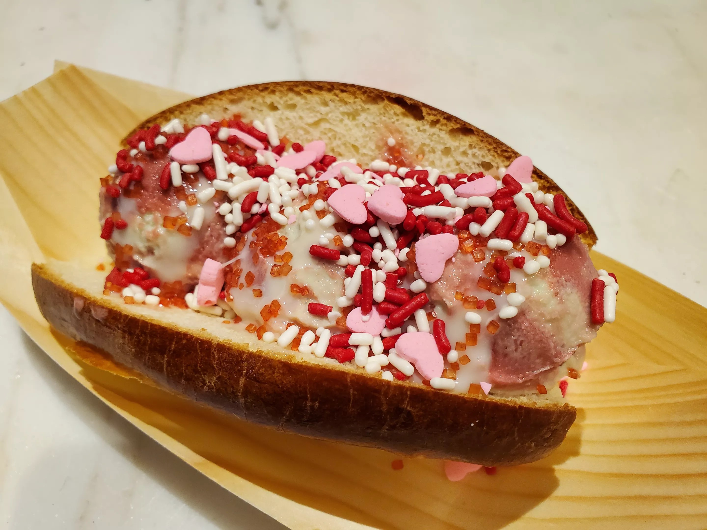 “We wanted something different and fun and creative outside the normal dessert realm,” he explains while adding heart-shaped sprinkles onto the signature Thai bun creation. “This is our geeked-out version.”