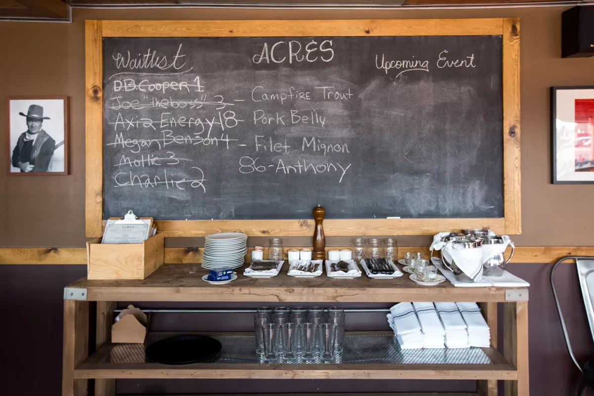 The scene unfolding at a little table by the window wouldn’t have surprised me in a high-end restaurant or wine bar. But I was at Acres, a neighborhood spot so humble it could pass for a small-town barbecue joint. Black-and-white photos of barns and windmills hang above tables made of repurposed 2x6s. Corrugated metal from an old barn runs in rivulets on the walls. Bare windows reflecting the open sign’s neon glow look over a stretch of South Broadway that’s home to reptile stores and auto shops. It’s the last place I would have expected a server to expertly read a table, but there he was, defusing what could have been an embarrassing situation.