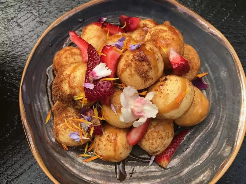 Perhaps the most interesting brunch-fusion mashup is the pua’a and grits: tender pork belly and poached eggs atop a bed of mushroom grits with housemade kimchi, which packs a ton of Asian inspiration into a breakfast bowl. And for something rich and desserty, Hawaiian malasadas – soft brioche doughnut holes coated in coconut sugar – are served with lilikoi (passion fruit) caramel and macerated strawberries. This dish is big enough to share with the table, but after one bite, you might not want to.