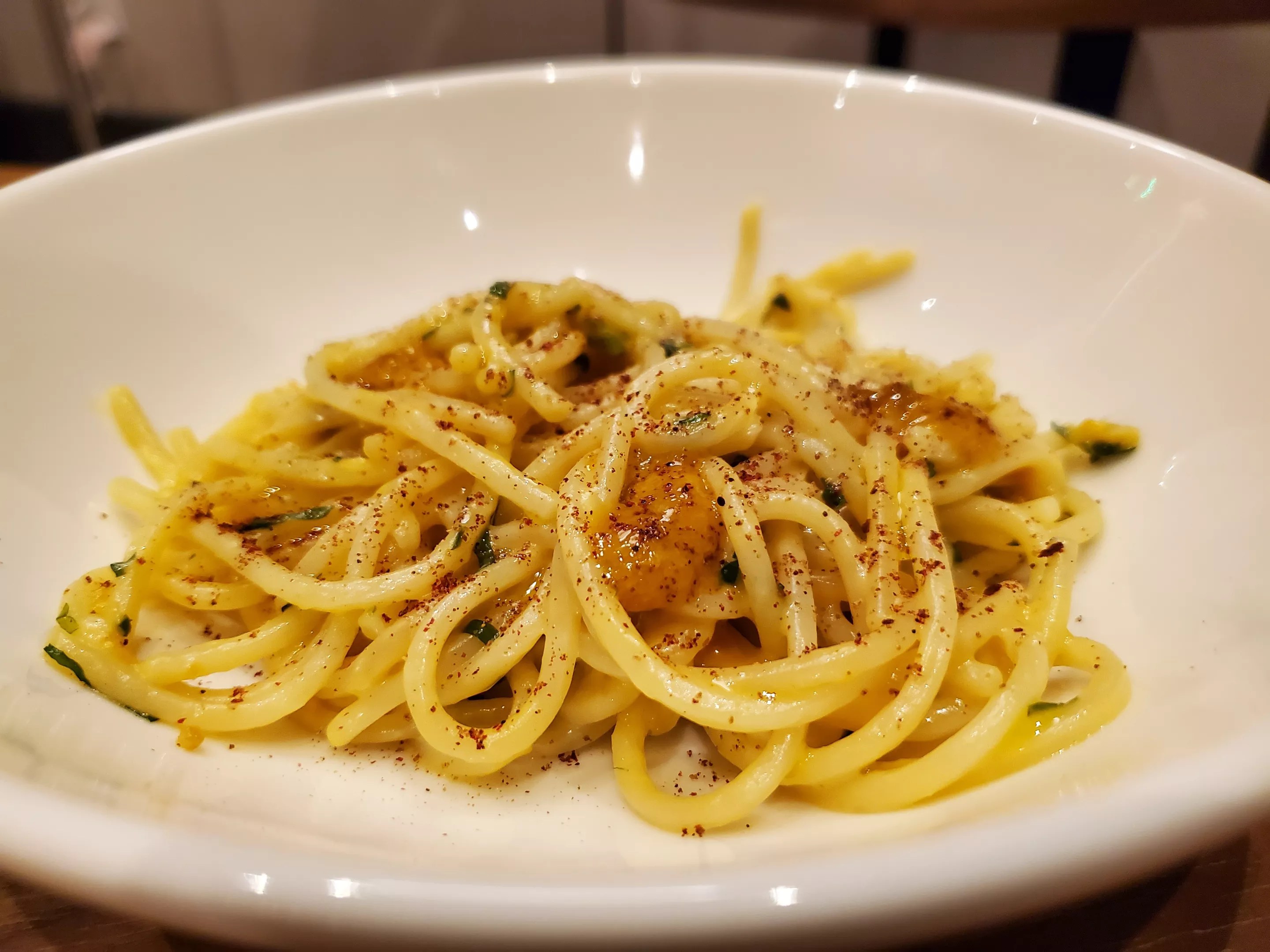 Pasta with uni from Santa Barbara.