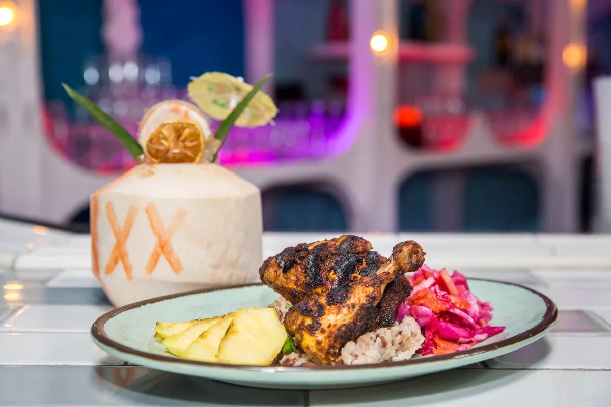 The team’s mantra of “authentically inauthentic” sounds liberating. Some dishes, however, would be improved if recipes stuck closer to tradition. For the jerk chicken, the kitchen takes pains to fill the smoker with traditional pimento wood, the tree that produces allspice berries, but then leaves out the expected torch-off-your-pants heat, which would make it even better. The callaloo, a cross between soup and creamed greens, is also unexpectedly mild; at least it contains the promised crab. (Callaloo is also offered as a vegan side.) “We wanted a few things that someone with a low spice tolerance could enjoy,” says executive chef Travis Messervey, who wrote the menu with Delk after immersing himself in Caribbean cuisine on several trips to New York. In a restaurant that shoots for the moon everywhere else, however, why sink to the lowest heat denominator?