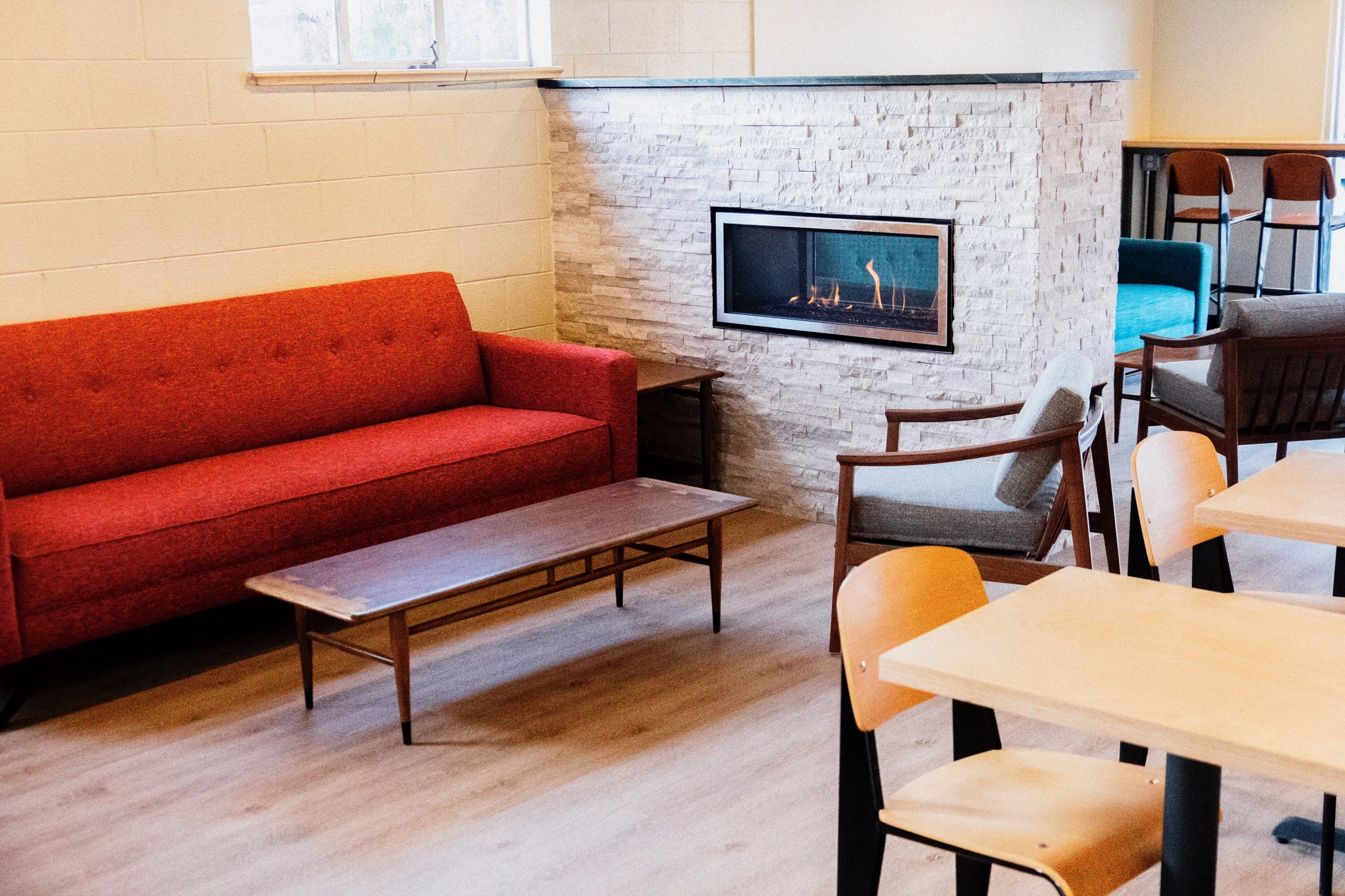 Although there are similarities between the two Bardos (coffee at both, for example, comes from Kaladi Roasters, as does all the equipment to prepare that coffee), the differences are much more obvious – one of the most noticeable being interior design. While the Baker location is what Graves describes as “bohemian”, the new location in Wheat Ridge is much more modern. Graves was inspired by the building itself, which was built in the 1950s and maintains a mid-century modern appearance. Two seating areas on either side of a stone fireplace are filled with sleek couches and chairs that add to the mid-century aesthetic. In contrast to the South Broadway spot, everything here looks brand new. Lots of light enters through the glass storefront, and a phone booth makes its home behind the bar. A long table in back is open for community seating as well as reservations for group meetings.