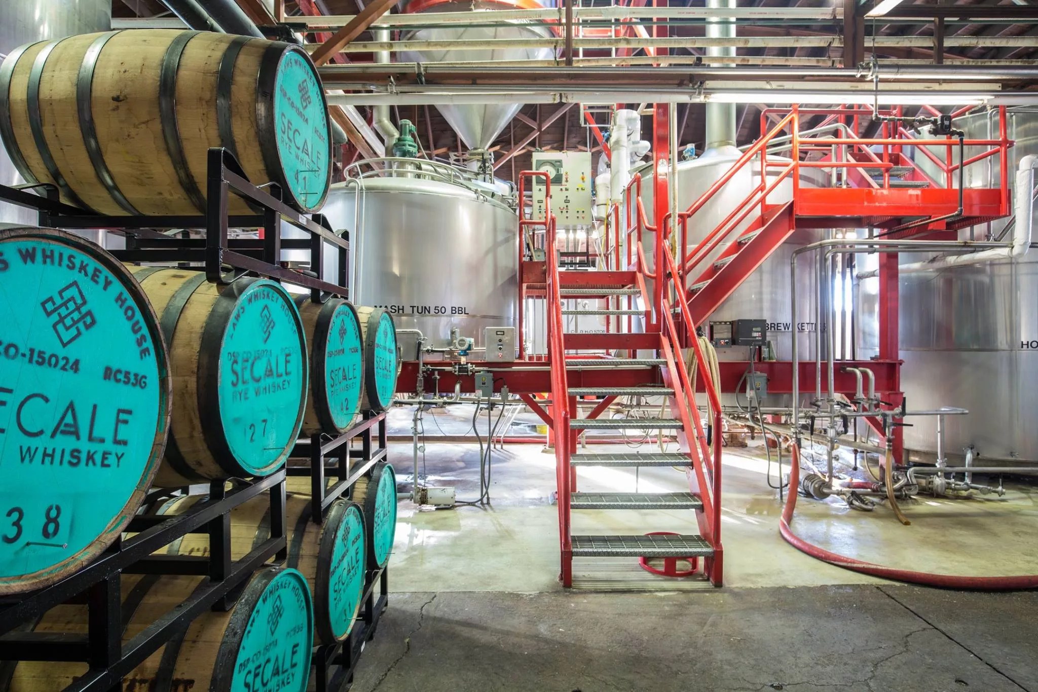 Here’s some of what’s up for sale: a massive, fifty-barrel brewhouse with hot and cold liquor tanks and a whirlpool; more than forty fermentation tanks ranging in size from fifty barrels to the two-story-tall, 200-barrel ones that loom over the top of the building; two huge grain silos with a total of 150,000 pounds in capacity; an entire cold room and refrigeration system; three forklifts; numerous bright tanks; air compressors; a high-tech Krones bottling line; a Wild Goose canning line; and a keg washing machine.