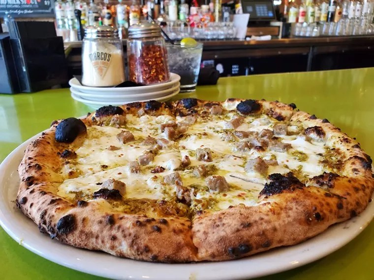 The pistachio and sausage Neapolitan pie at Marco’s is a must-try.