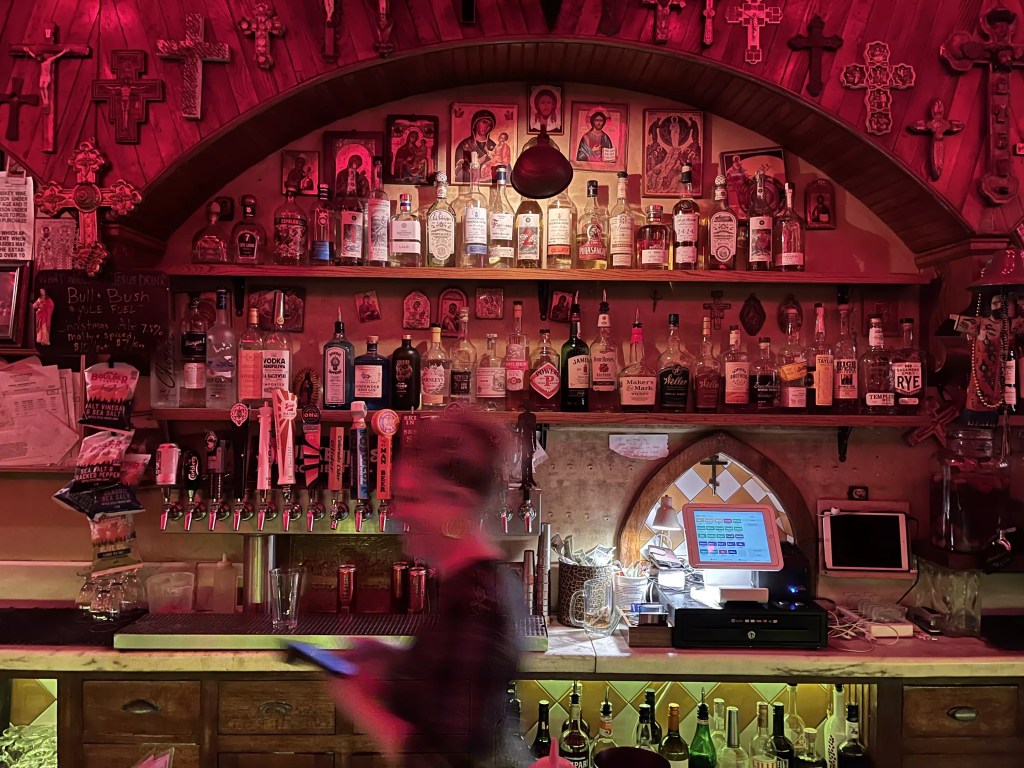 Andrew Harris went from food-truck operator to bar owner when he debuted the first iteration of the Devil’s Drink, his “underworld speakeasy,” in 2023. In September, the bar moved into its new home, a subterranean space that’s a much better fit — and much larger than its former digs. Now, patrons descend a set of stairs to reach the red-hued watering hole with a menu that includes over a dozen versions of the popular drink of the moment: the espresso martini. The Devil’s Drink 2.0 also includes a room with pool tables for your playing pleasure, and don’t miss the coffin photo opp outside of the restrooms.