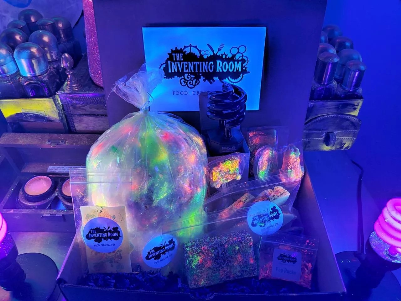 If a treasure chest of sweet treats that glow in the dark aren’t on your kid’s Santa wish list, it’s only because they don’t know about it yet. Send a truly unique snack to any sugar lover from the Inventing Room Dessert Shop in Sloan’s Lake. The glow-in-the-dark Gobblebox includes treats that exude luminous colors under black light (included in the package), all created in-house by chef Ian Kleinman. Each box contains organic raspberry cotton candy, lollipops shaped like a Game Boy, Etch-a-Sketch, Harry Potter frog and two mystery shapes, plus honeycomb candy, a birthday-cake marshmallow and unicorn pop rocks. You can also choose to add other treats to the blocks (though the other selections don’t glow). The shop is currently closed to visitors, but treats can be ordered online for delivery, with free shipping on orders over $49.