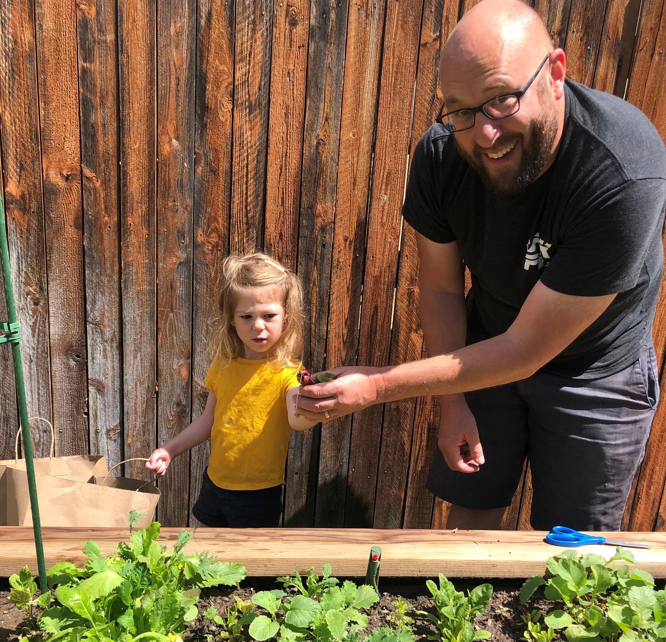 Sophie Rosenberg and dad Hosea in the garden.