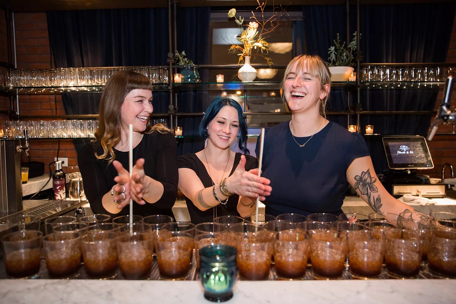 Death & Co. lead bartender Alex Jump (right) is mixing a special cocktail for International Women’s Day.