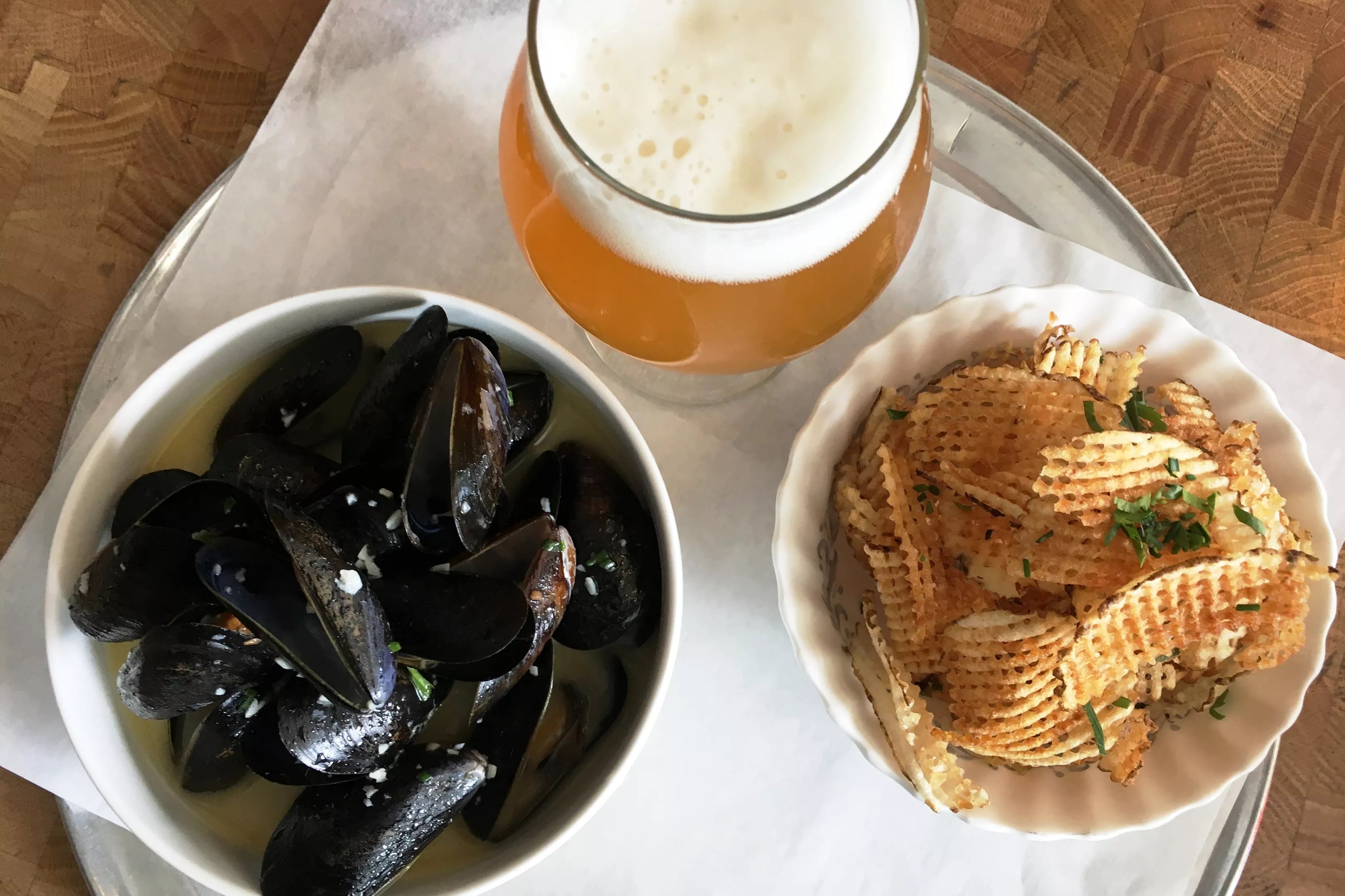 Bistro Georgette is the project of Leon, who just came off a three-year stint as executive chef at Mizuna, and two former Mizuna colleagues, Heather Morrison and Austin Carson. Morrison rose to service manager after eleven years at the upscale Governor’s Park restaurant, while Carson was general manager and sommelier. With Bistro Georgette, they’ve put together a menu of craveable French bites, starting with hand pies stuffed with beef bourguignon or wild mushrooms, and also including a croque madame on brioche dripping with creamy Mornay sauce, crispy potato croquettes stuffed with shredded coq au vin, and classic steamed mussels in a buttery sauce sided with waffle-cut potato chips.