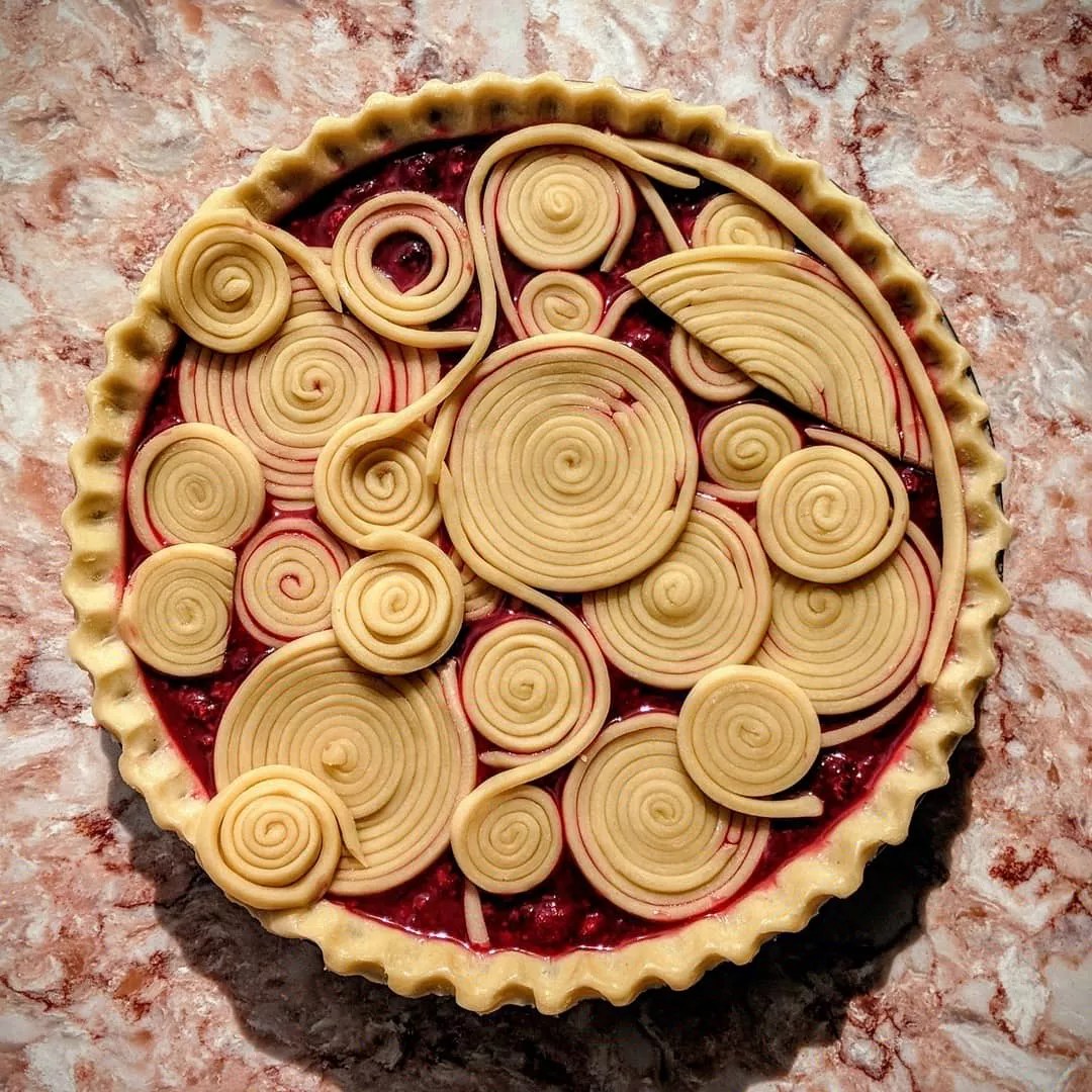 But since then, he’s taken inspiration from other bakers to create beautiful geometric patterns on the top crusts of his pies, which he bakes in black-carbon sauté pans. Using circular cutters and a chitarra (a stringed pasta slicer named for its resemblance to a guitar), Leon weaves and layers intricate shapes on top of fruit fillings. Some of those artistic creations will be on display in a pie case on the counter as daily specials.