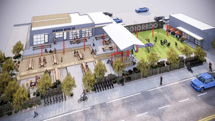The final product will include a 2,563-square-foot brewery and taproom that will be similar to Denver Beer Co.’s locations on Platte Street and in Olde Town Arvada, along with a 10,000-square-foot patio with a tiki bar, fire pits, yard games, a beer garden and bike parking…a good amenity in this area.