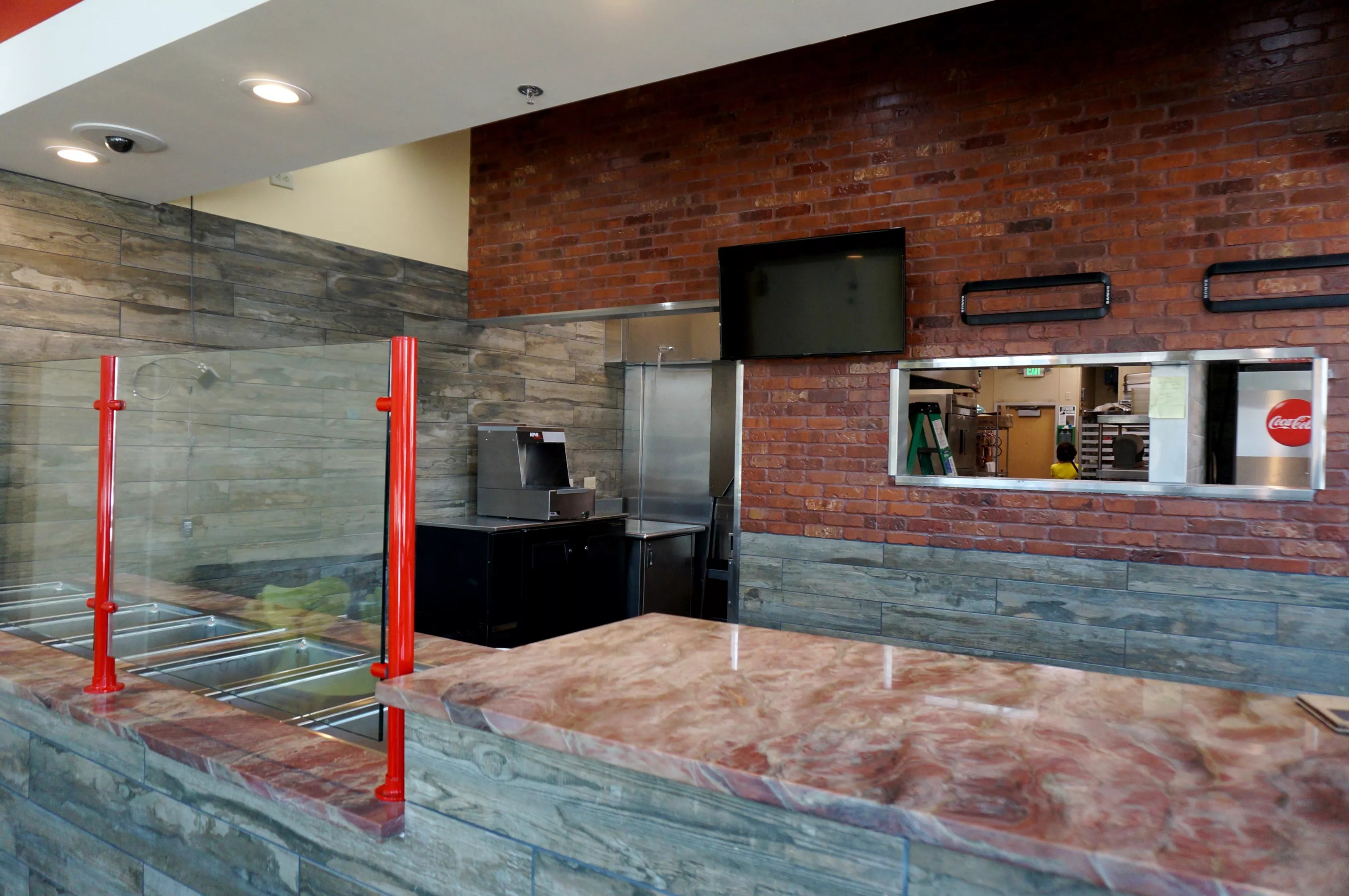 While the new restaurant will be much fancier than the original, with quartzite countertops and digital menu screens on the wall, there will also be nods to the past. Artist Gamma Acosta added a mural to an interior wall depicting Bourbon Grill customers queuing up under the shop’s famous red awning, and the brick wall that separates the kitchen from the dining room was designed to resemble the old location’s sidewalk-facing facade.