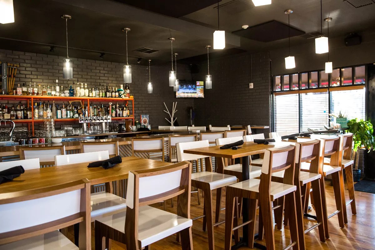 So far, the neighborhood has embraced Brightmarten, with a steady stream of gray-hairs, singles and families with young kids filling first the bar for happy hour, then the six-person booths, then the community table. Redesign was handled on a budget, with a new coat of dark-gray paint and shiny cut-out aspen trunks on the walls, and the same style of contemporary furniture and paper-pendant lamps that neighborhood families might themselves bring home from Ikea. But just because Brightmarten caters to the neighborhood doesn’t mean it’s homey. Dark walls contrast sharply with the bright white and orange furniture, and accents are largely missing. Maybe over time, the booths will acquire tea lights or plants or even salt and pepper shakers to make them feel less stark.