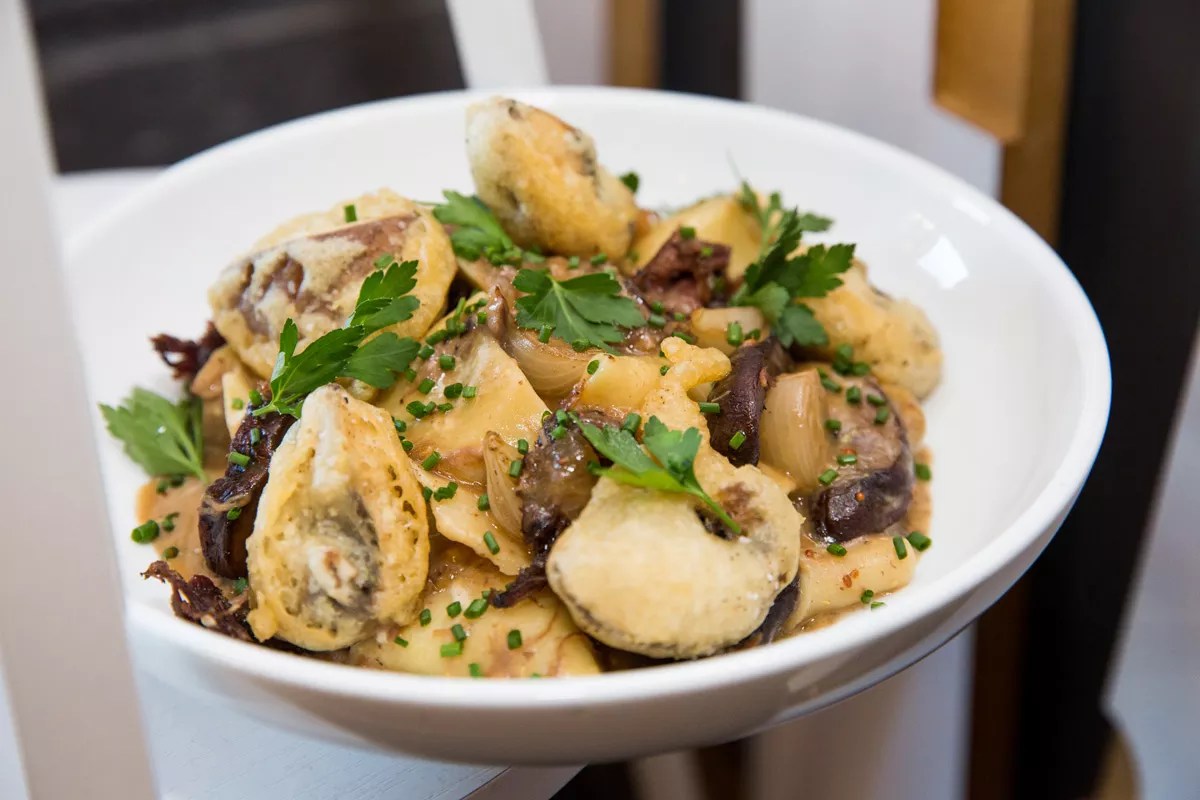 Brussels sprouts, which have fast-tracked their way to being everyone’s favorite vegetable, are tossed in a fall salad with apples, gently smoked ricotta and greens. The combination is Brightmarten at its best: simple, balanced and, well, bright, thanks to a citrusy vinaigrette. Pair that salad with the beef stroganoff, and you’ve got a meal you could order several times a week, which is the secret goal of every neighborhood restaurant (beyond staying in business, of course). Braised, shredded short rib clings to noodles so wide and hearty, they’re nearly the size of lasagna noodles. The kitchen goes all in on this sauce, upping the beefiness by mixing mushroom cream with the braising liquid and a splash of French onion soup. Order this combo when the snow is falling. Order it on a Wednesday when you need a pep talk to finish out the week. Order it and be king of the table, presiding over the dishes that everyone else wishes they’d ordered.
