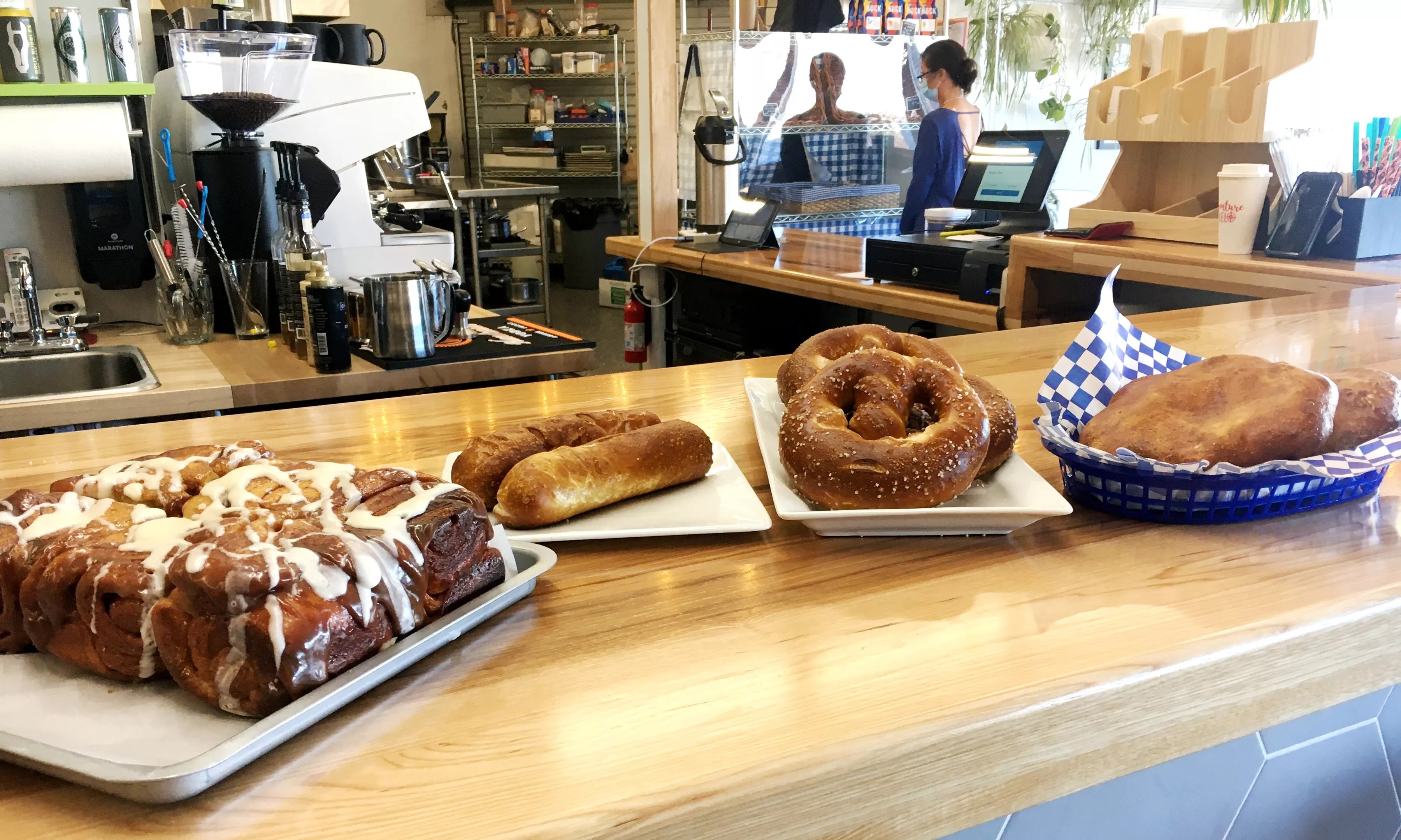 Bavarian-style pretzels are definitely Brockmeyer’s signature items, but they’re far from the only draw. Coffman conceived of the cafe as a neighborhood gathering place, where regulars could stop by in the morning for espresso drinks, tea and other hot beverages (don’t miss the tres leches latte), along with sticky buns and pretzel bagels shmeared with housemade cream cheese, which Coffman creates from fresh cream, whole milk and a bacterial culture. He also makes his own mustard to go with the pretzels.