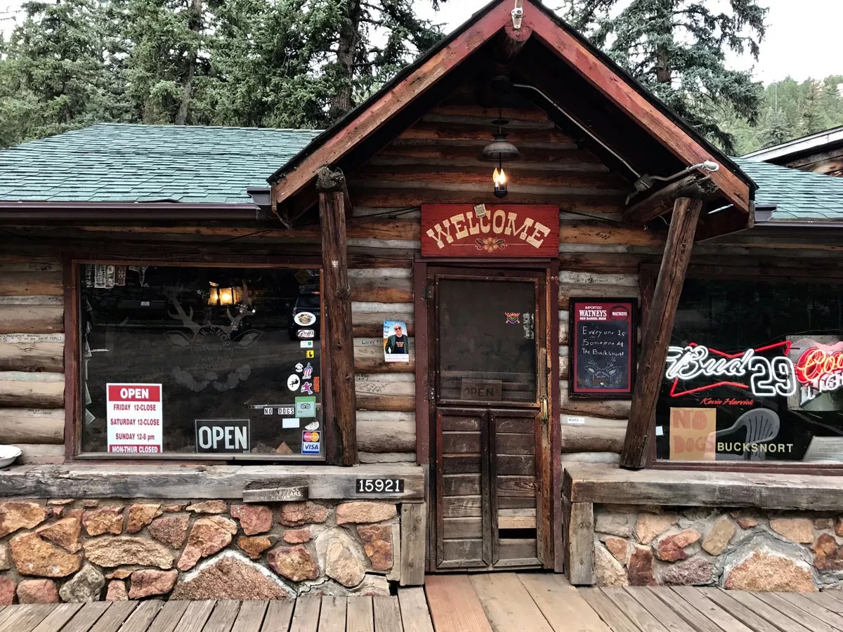 The Bucksnort got its start over a century ago, when Lydia and Howard Newhouser ran the Sphinx Park Mercantile out of a circa 1920 wooden structure perched at 7,040 feet in the narrow canyon above Elk Creek. The store catered to railroad workers on the narrow-gauge Denver and South Park Railroad, which ran to Buena Vista, as well as miners who lived in the area and early vacationers trying to avoid the heat (and smell) of a Denver summer, living in rustic cabins that dotted the area of Pine and Sphinx Park.