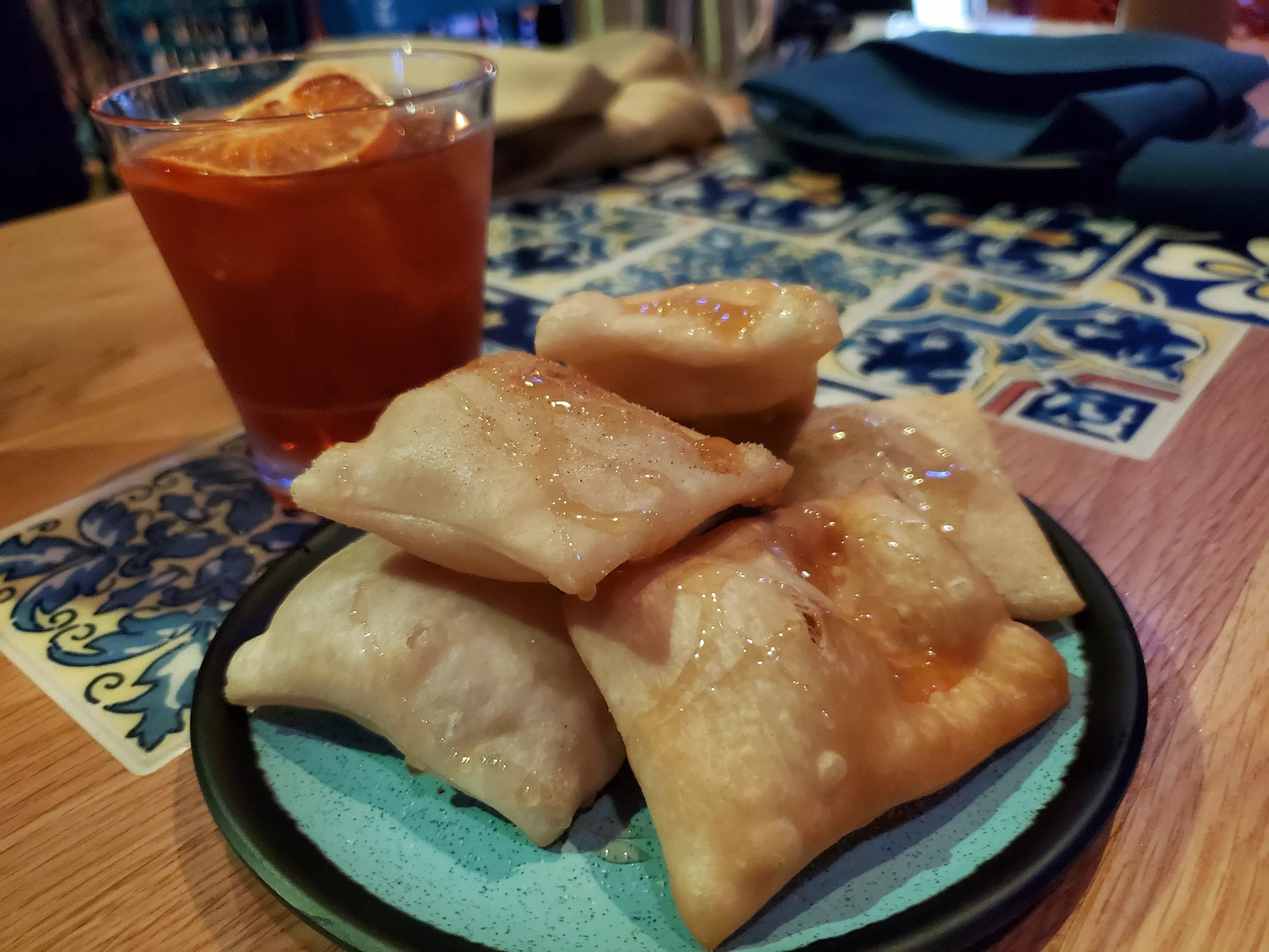 They are! Although the fried dough is now served from a dedicated sopaipilla window in the main dining room. They come pre-drizzled – so no more filling the entire thing with honey, though you can request extra. But you’ll get packets, not a bottle.