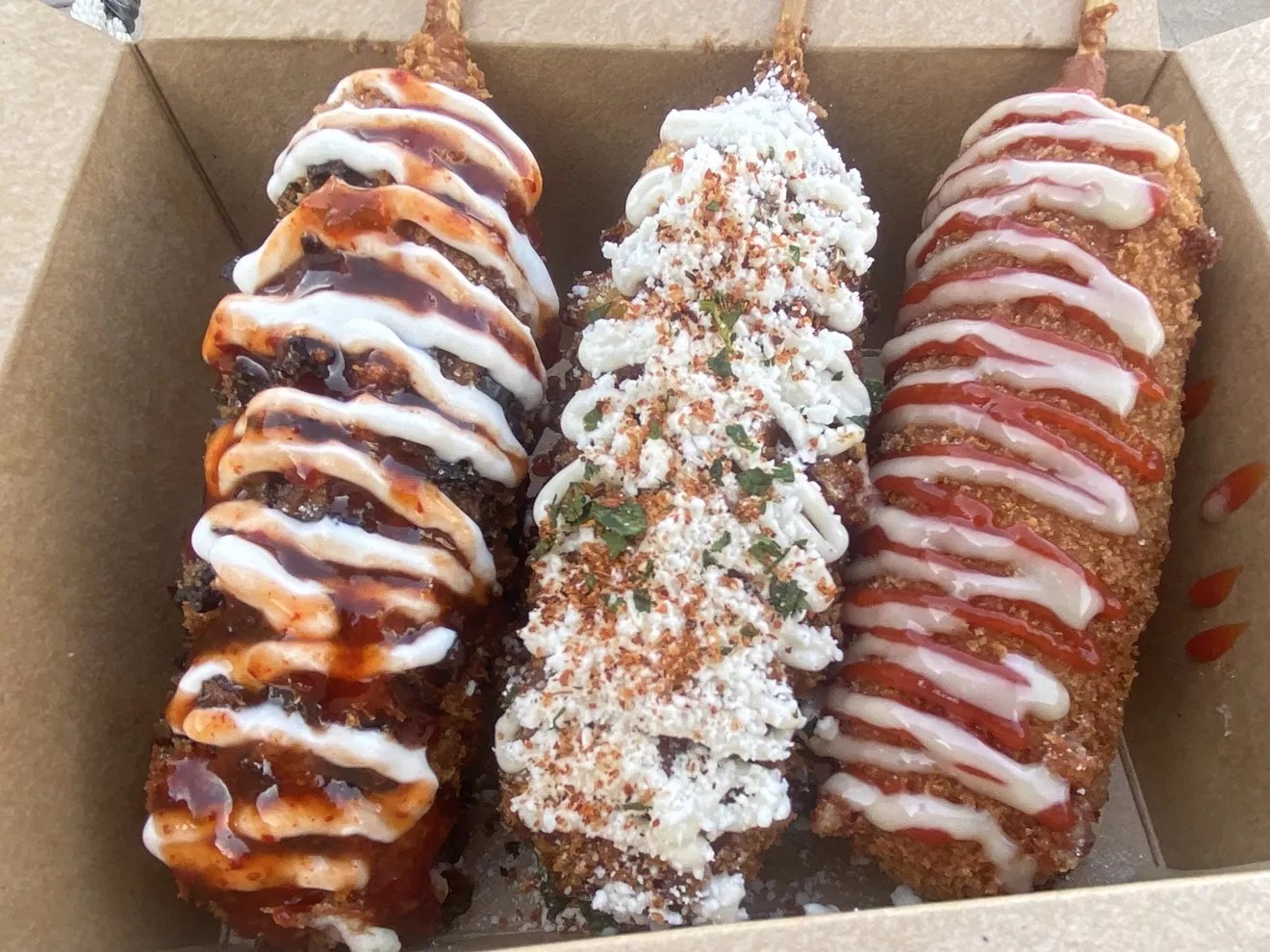 Mukja is a family-owned and -operated food truck that specializes in Korean street food, namely cheese dogs. These deep-fried delicacies on a stick come in four flavors, including Jalapeño Poppin’ Cheese, elote, Hot Cheeto, and classic Korean street cheese. Wonton nachos and kimchi fries are other creations by owner Julia Rivera, who, along with her children James and Kayla Makowski, won the Food Network’s Food Truck Prize Fight just last month.