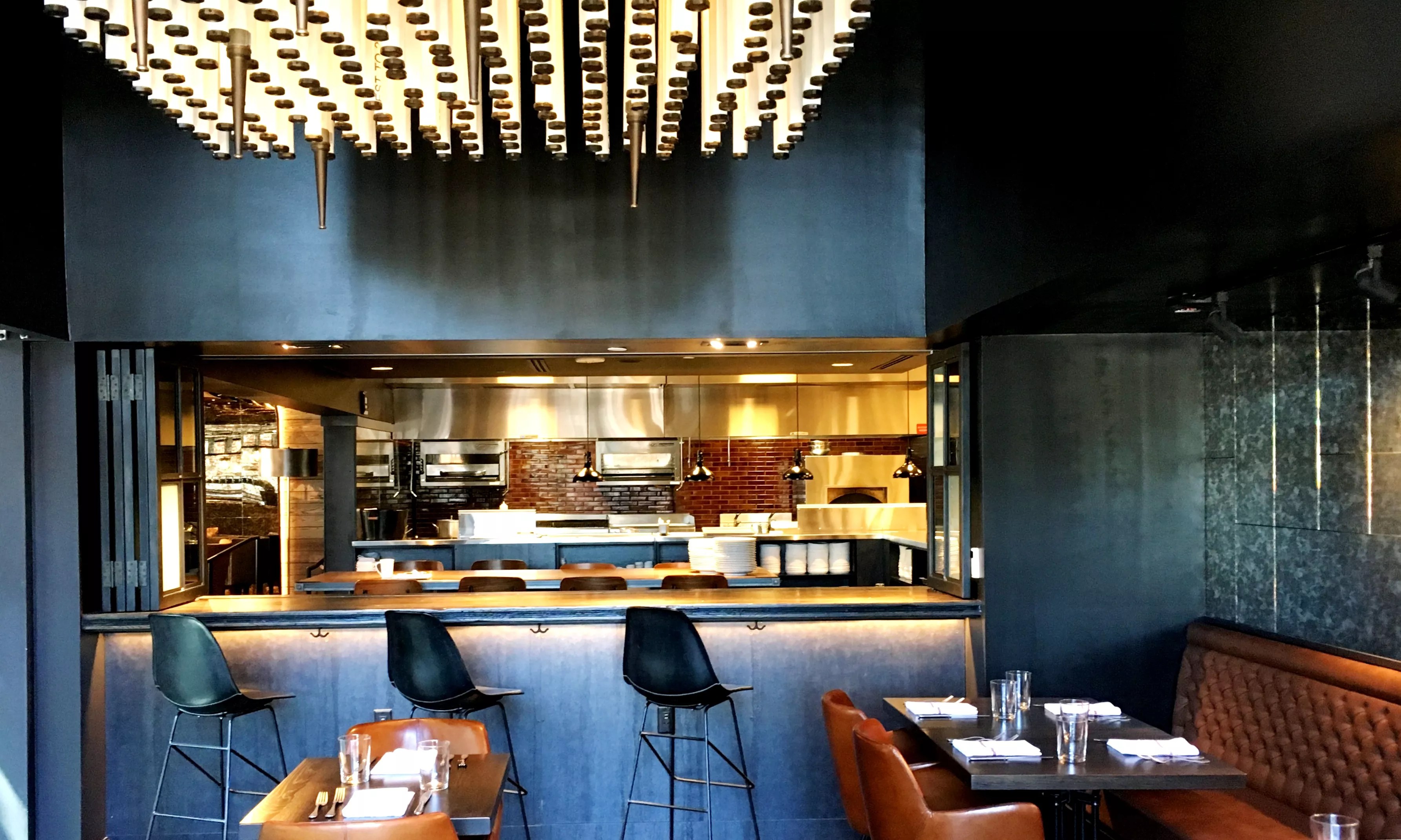 A private dining room houses a ceiling fixture made from vintage firehoses, and there’s also a chef’s counter looking from that private room into the kitchen. A courtyard facing 20th Street makes a great perch for watching Rockies fans streaming into the ballpark on game days.