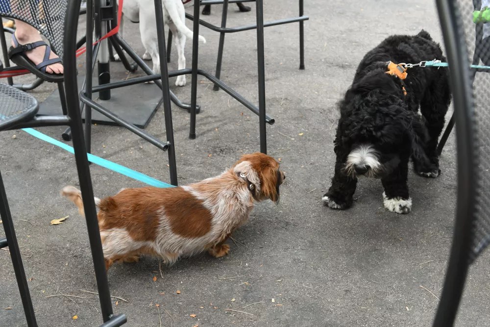 Dogs on patios should be short enough that they can’t steal food from tables but tall enough that they’re not a trip hazard.