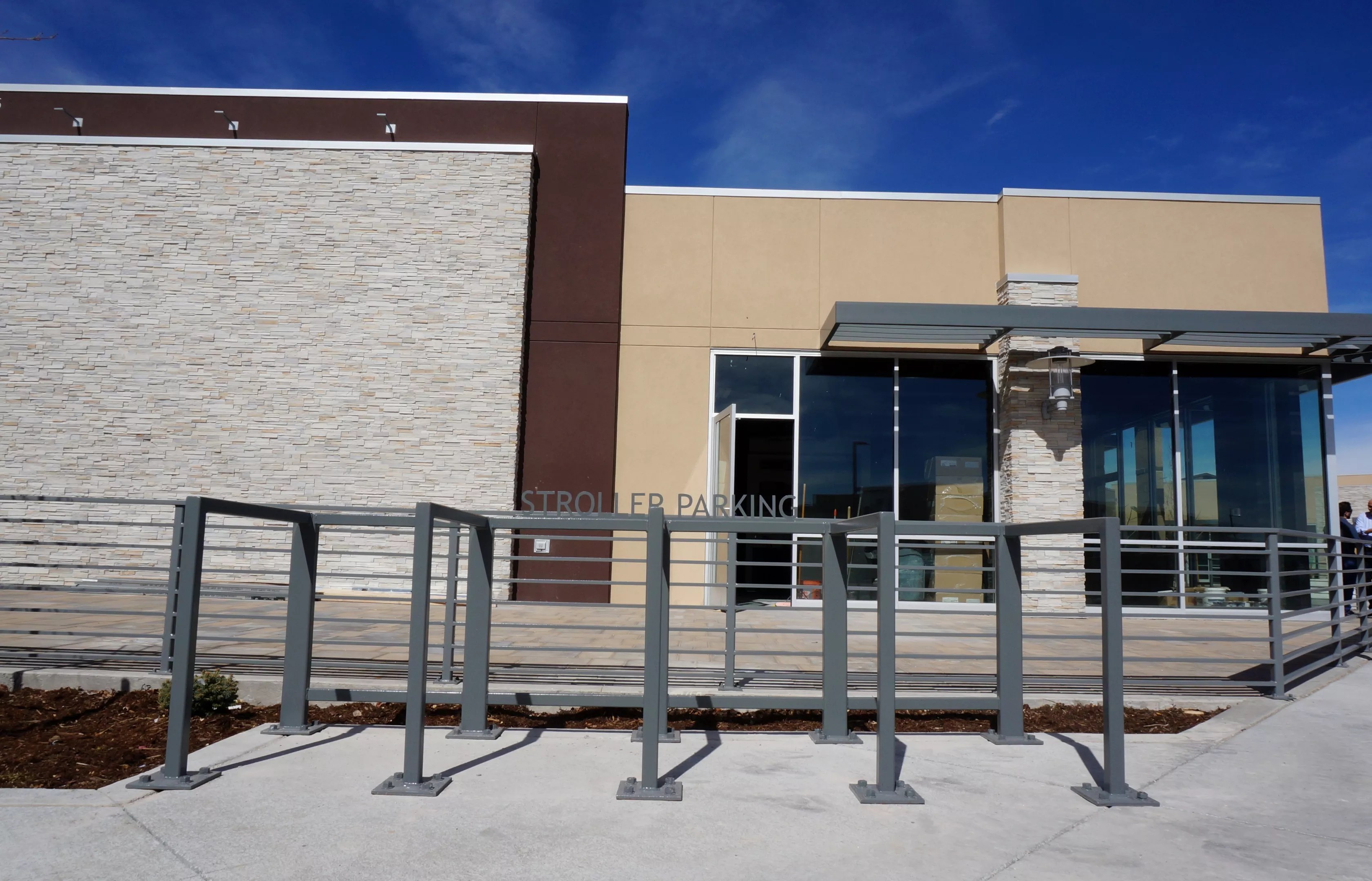 Concourse’s patios will have room for seventy guests. The stroller parking is provided by the property developer.