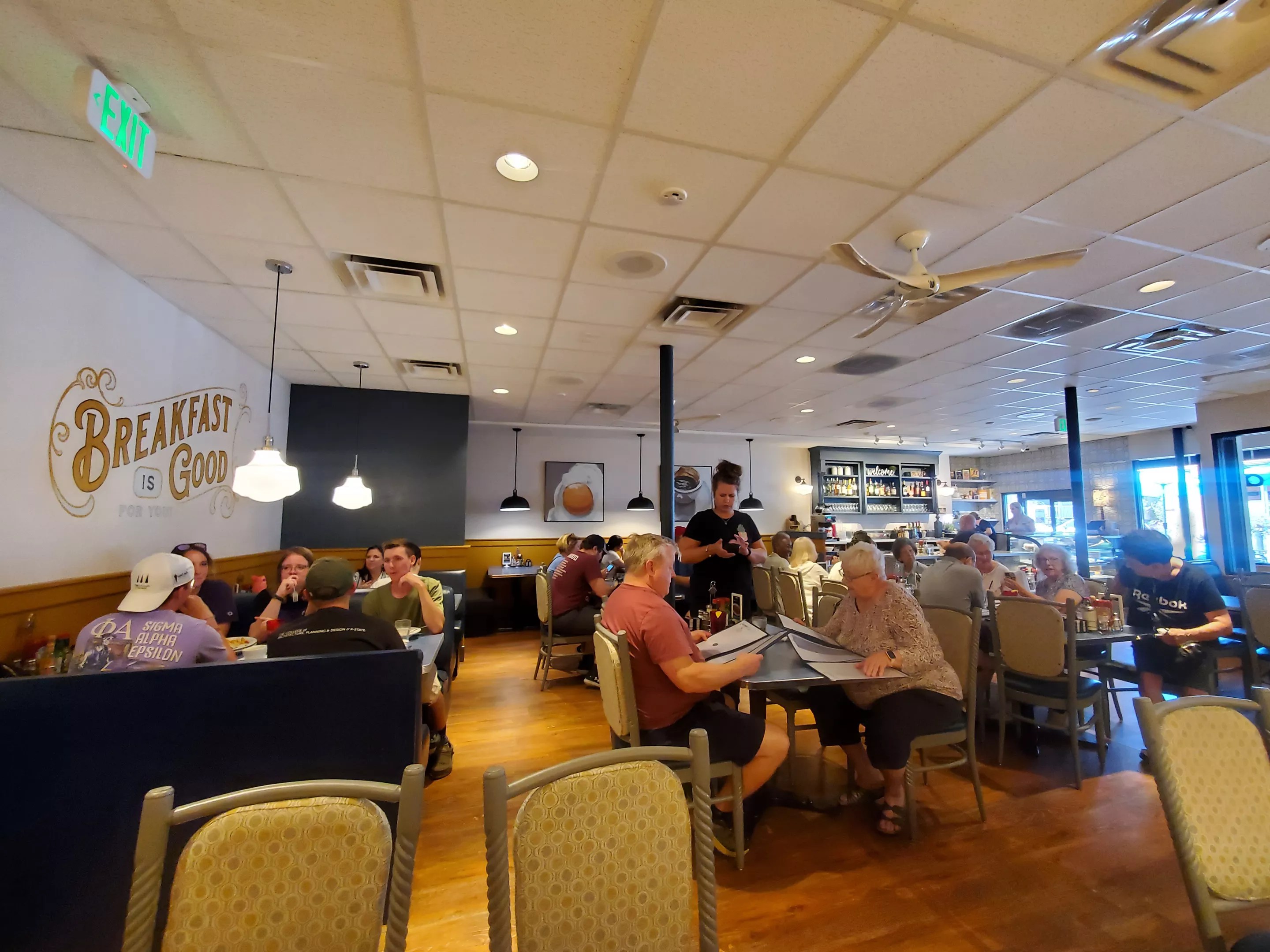 As LuKanic and I talk, the restaurant begins to fill. A four-top of twenty-somethings mulls over the options while an older woman greets a man about the same age at another, larger table in the middle of the restaurant. “They’re having a high school reunion,” LuKanic tells me of the group, which grows to about ten. “They’re from the Manual High School class of 1960.”