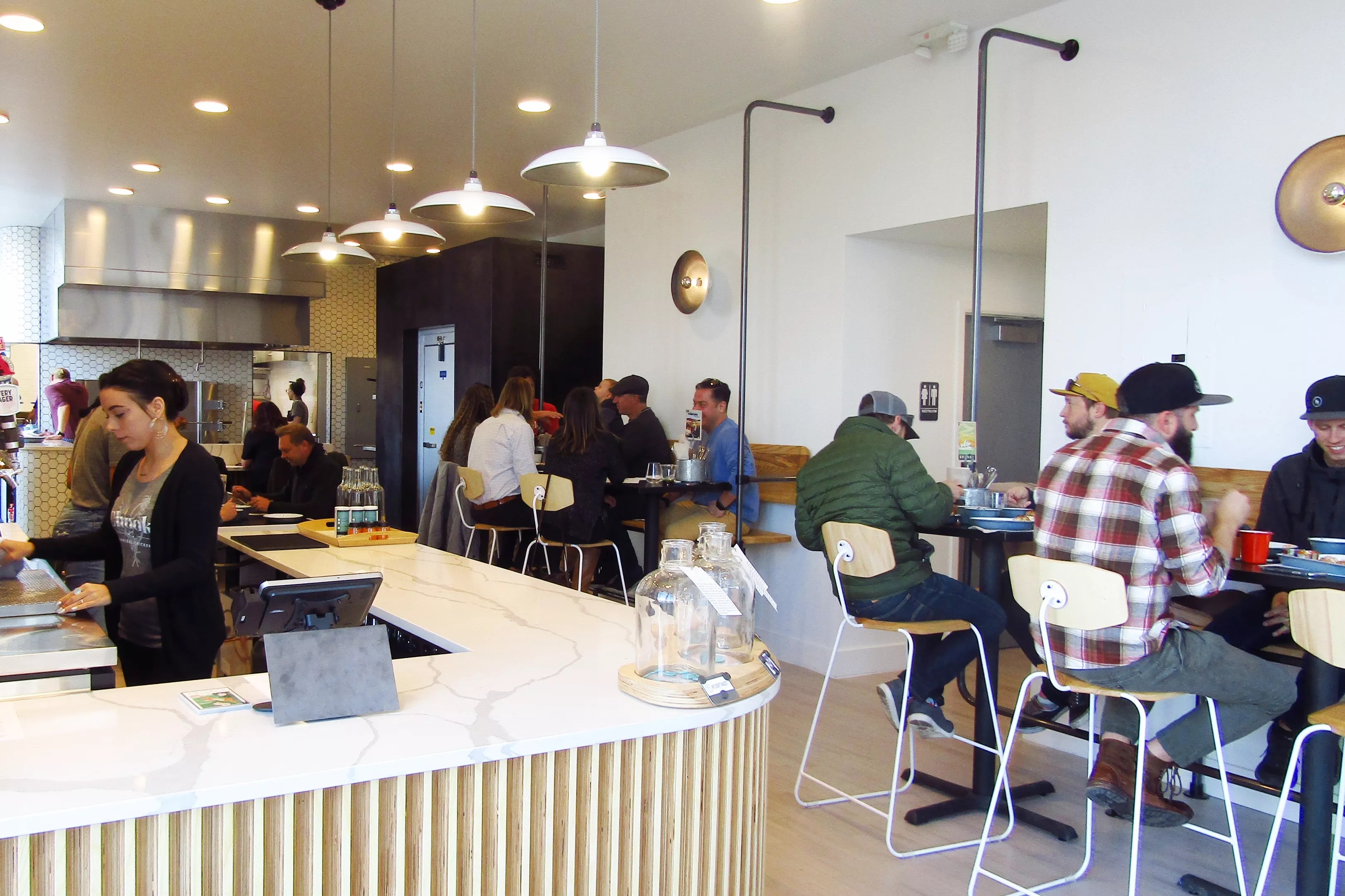 Schlegel has partnered with chef Alex Seidel (founder of Fruition and Mercantile Dining & Provision) and Randy Layman (front-of-house and bar expert) on the project, who each add a crucial element in Chook’s overall plan. While a whole roast chicken can be had for $20 and a plate of three sliders stuffed with pulled chicken, slaw and gravy rings in at $9, Seidel’s focus on high-end cuisine ensures that flavors rise above typical fast-food fare. Layman adds a quality beverage program of house wines from Italy and batched cocktails served in glass “pots” with foil lids, as well as a dedication to hospitality that extends to Chook’s employee training. And Schlegel’s experience with Snooze all but guarantees a smooth-running operation, even at high volume.