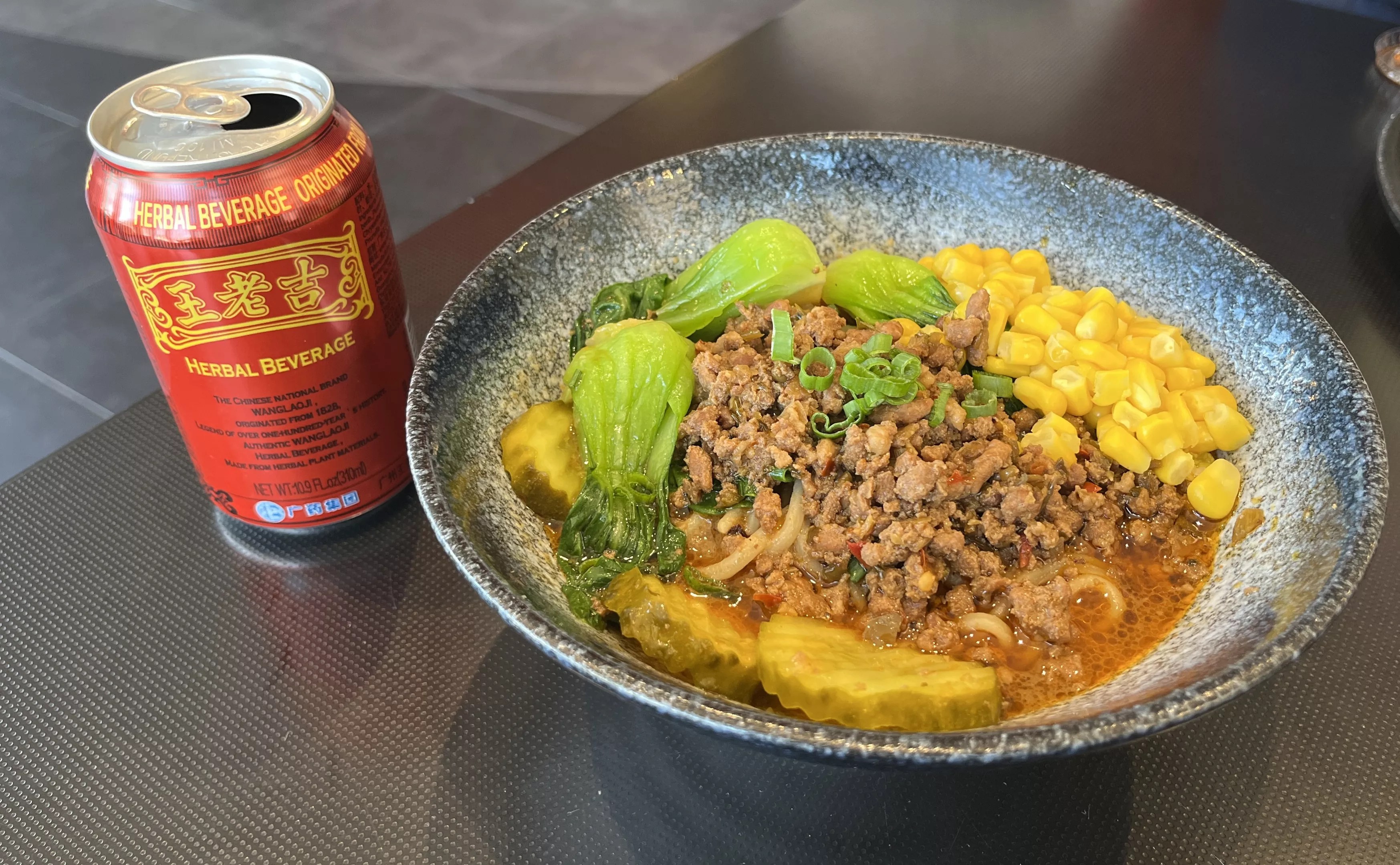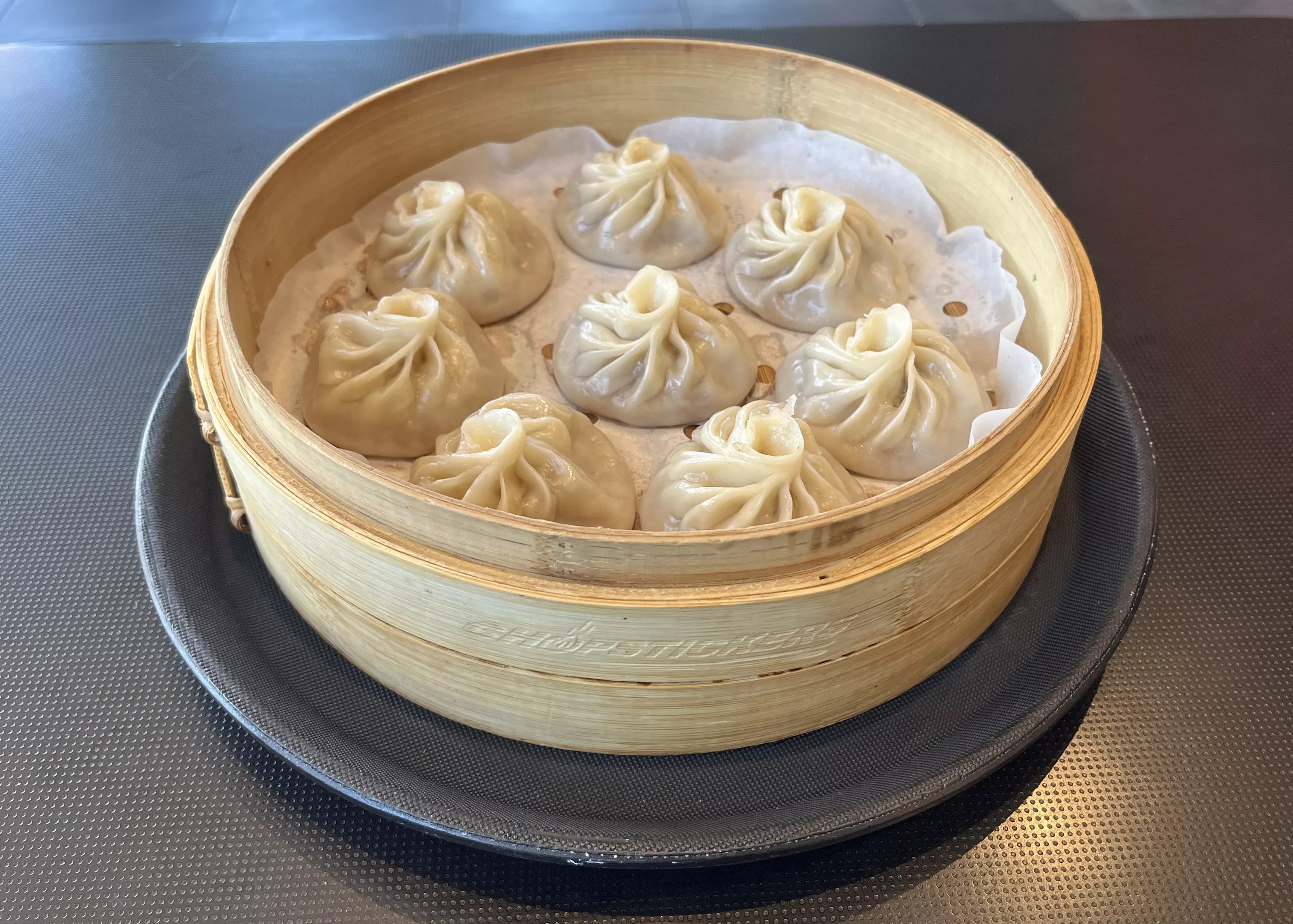 While the most famous dish is the soup dumplings, other highlights include the pork potstickers and water fried bao, which are bao buns with a crispy golden brown bottom and a pork, shrimp chive or vegan filling. Another customer favorite has been the spicy dan dan noodles that come topped with ground pork, bok choy, pickles and corn. Guests can also sip on a can of Wanglaoji, one of the most popular herbal beverages in China.
