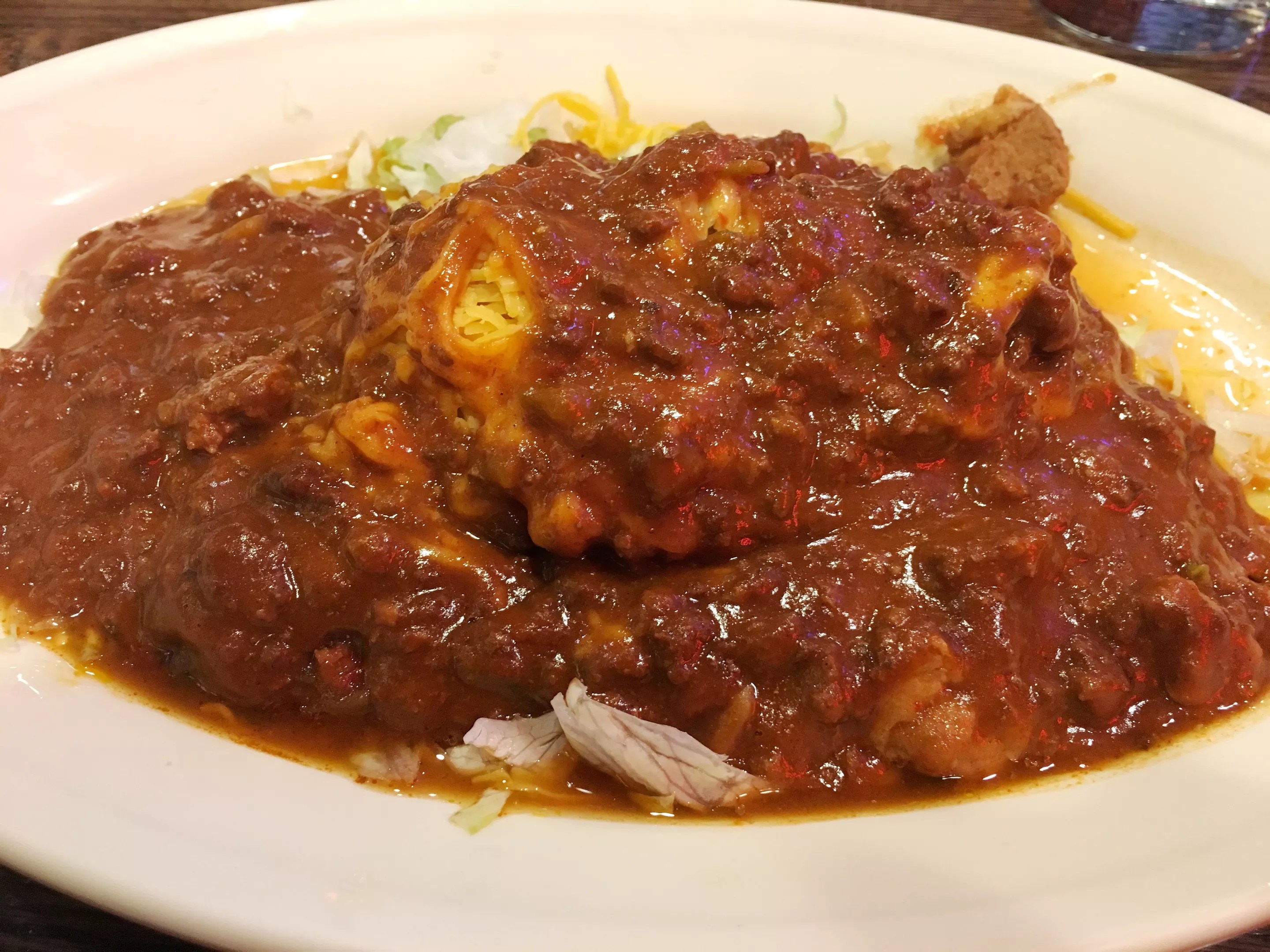 Detecting the subtleties of two sauces ladled onto one plate isn’t something you’ll have to worry about at Brewery Bar II (150 Kalamath Street); there’s nothing subtle about the fare at this decades-old eatery. Manager Jennifer Jackson explains that when a customer orders a burrito Christmas-style, the green chile – a powerful concoction studded with chiles, tomato and chunks of pork – goes on first, followed by beefy red chile that’s more akin to, yes, chili con carne. The sauces are served on top of each other rather than side by side, so every bite contains a mixture of the two. If the brawny burrito is a little intimidating, you can get in the Christmas spirit with tamales, chiles rellenos, enchiladas or even smothered tostadas (something you’re not likely to find outside of Brewery Bar).