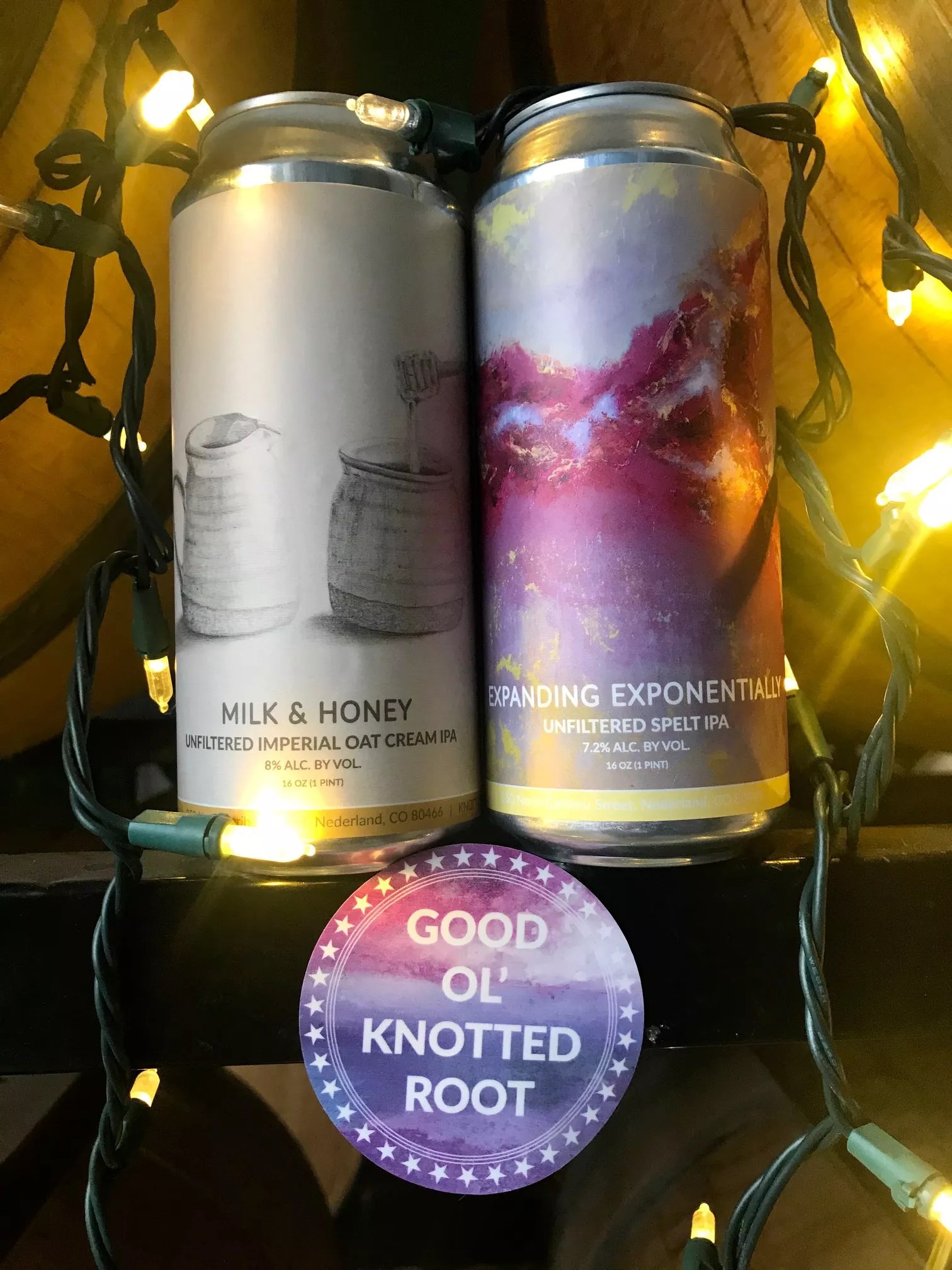 Knotted Root Brewing in Nederland will release both of these beers at noon. Milk and Honey is an 8 percent ABV “unfiltered imperial oat cream IPA” brewed in collaboration with Fiction Beer. “Hopped in the kettle with Southern Passion, then double-dry-hopped with Nelson Sauvin and The Bruce, we added a hefty dose of lactose to produce a silky mouthfeel and some local wildflower honey for a rustic sweetness,” Knotted Root says. “Think Golden Grahams, lychee sorbet, and orange blossom honey sticks.” Expanding Exponentially Unfiltered Spelt IPA was brewed with Cellar West Artisan Ales. “As a twist, we utilized mostly all European ingredients for this hoppy ale, including Belgian pilsner malt, German spelt, English golden naked oats, French Barbe Rouge hops and German Callista hops. And then we added a touch of Mosaic – cause ‘Merica.”