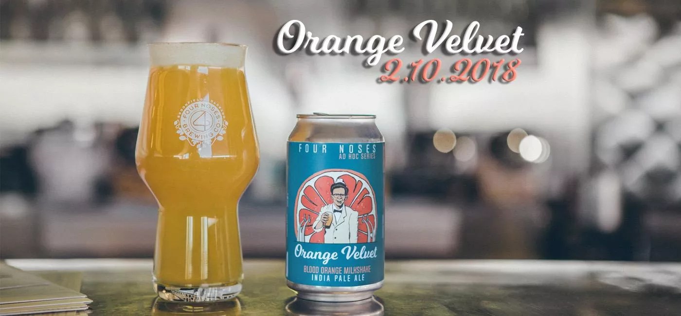 4 Noses Brewing will release its latest Ad Hoc Series beer, Orange Velvet Blood Orange Milkshake IPA, at 11 a.m. “The Amarillo, Citra and Jarrylo dry-hopping accentuates the blood-orange character, while the lactose sugar creates a full and fluffy mouthfeel,” the brewery says. “This amalgamation of hops, fruits and lactose sugar will trigger forgotten memories of orange creamsicles and push the boundaries of the IPA as we know it.”