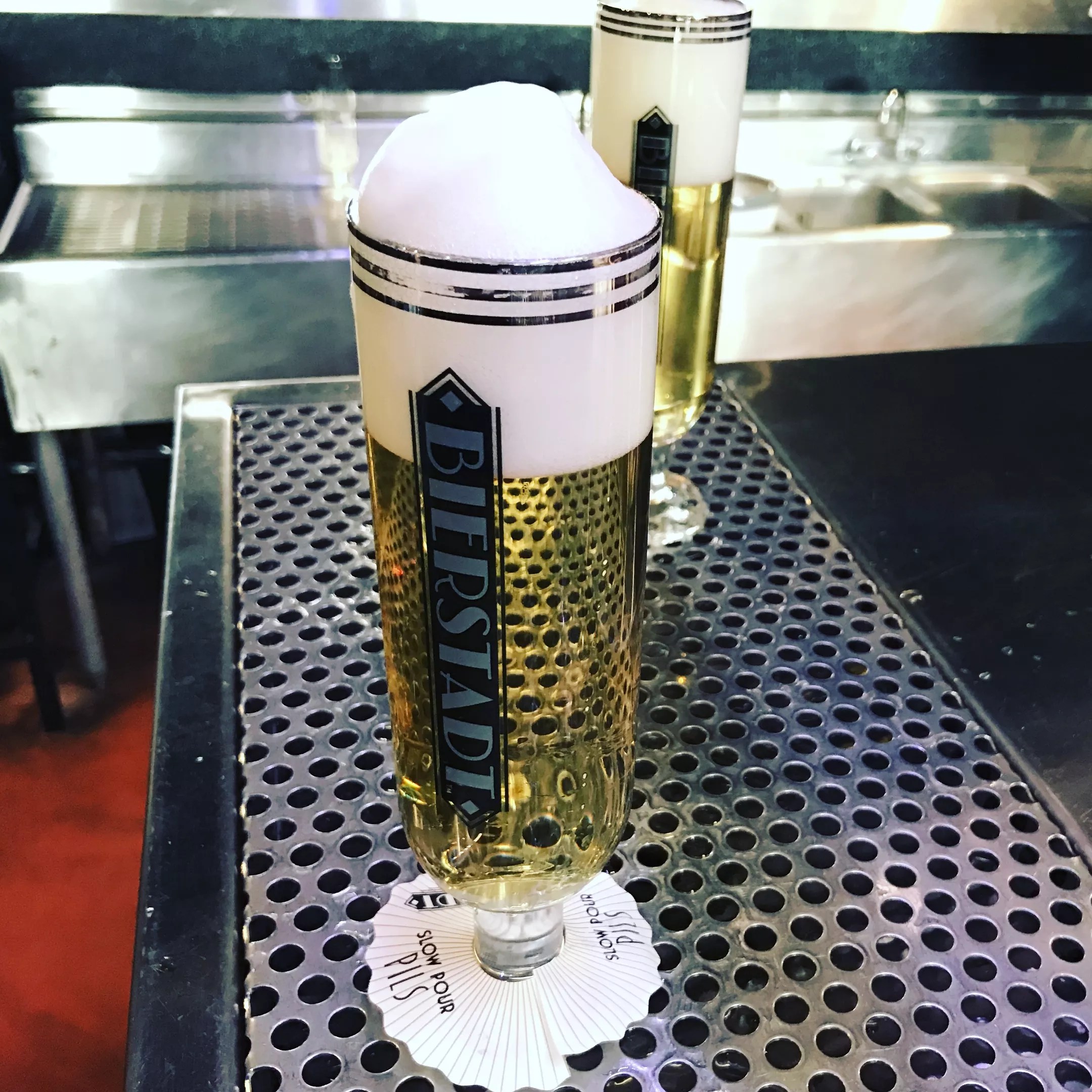 Slow Pour Pils comes in a specially designed glass of its own.