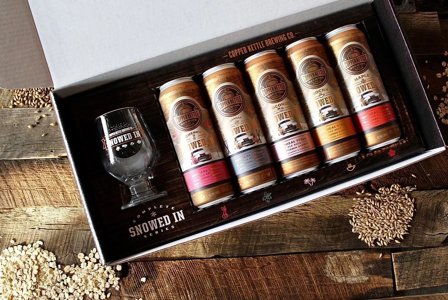 Copper Kettle Brewing went big – really big – for its first holiday beer gift box. The set includes five variants of the brewery’s Snowed In Bourbon Barrel Aged Imperial Oatmeal Stout series: cherry, vanilla, coconut, mocha and maple, as well as a custom Snowed In glass. And it will set you back a bit, as the gift box retails for $110 plus tax. Then again, these are big, 13 percent ABV beers and they come in huge 19.2-ounce cans.
